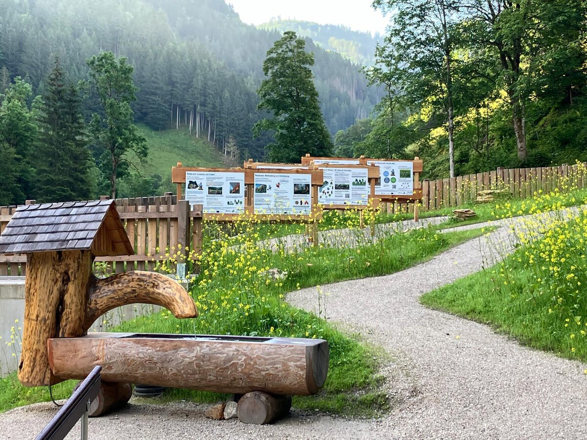 Der angrenzende Wald bietet einen idealen Schattenplatz zum Relaxen und Entspannen, als auch die Steinstiege zum Walchenbach, die als „Cool Spot“ zum Abkühlen an heißen Sommertagen genutzt werden kann.