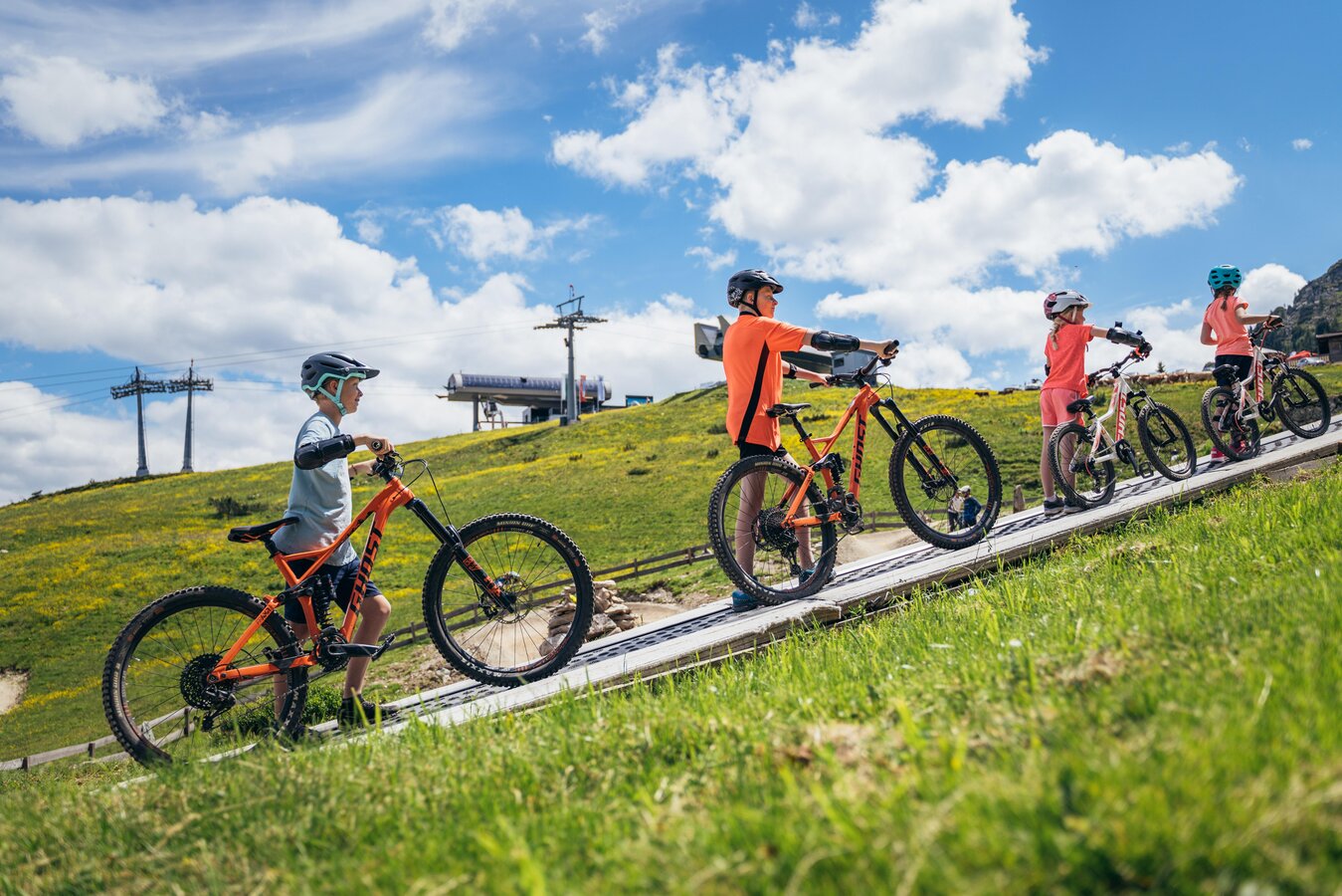 Junge Mountainbike-Freunde werden auf 2 unterschiedlichen Lines spielerisch auf die weiteren Strecken der Reiteralm Trails vorbereitet.