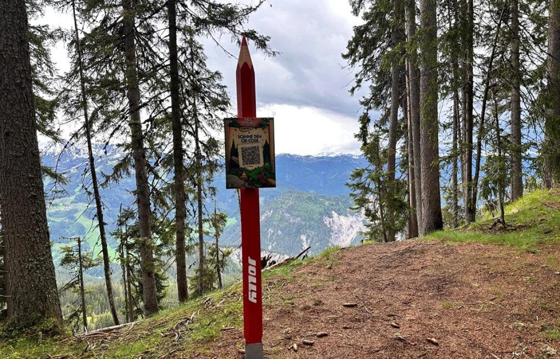 An der Talstation des Rittisbergs beim Waldhochseilgarten zum abholen: die bunten JOLLY „CRAZY Neon- und Graphitstifte“.