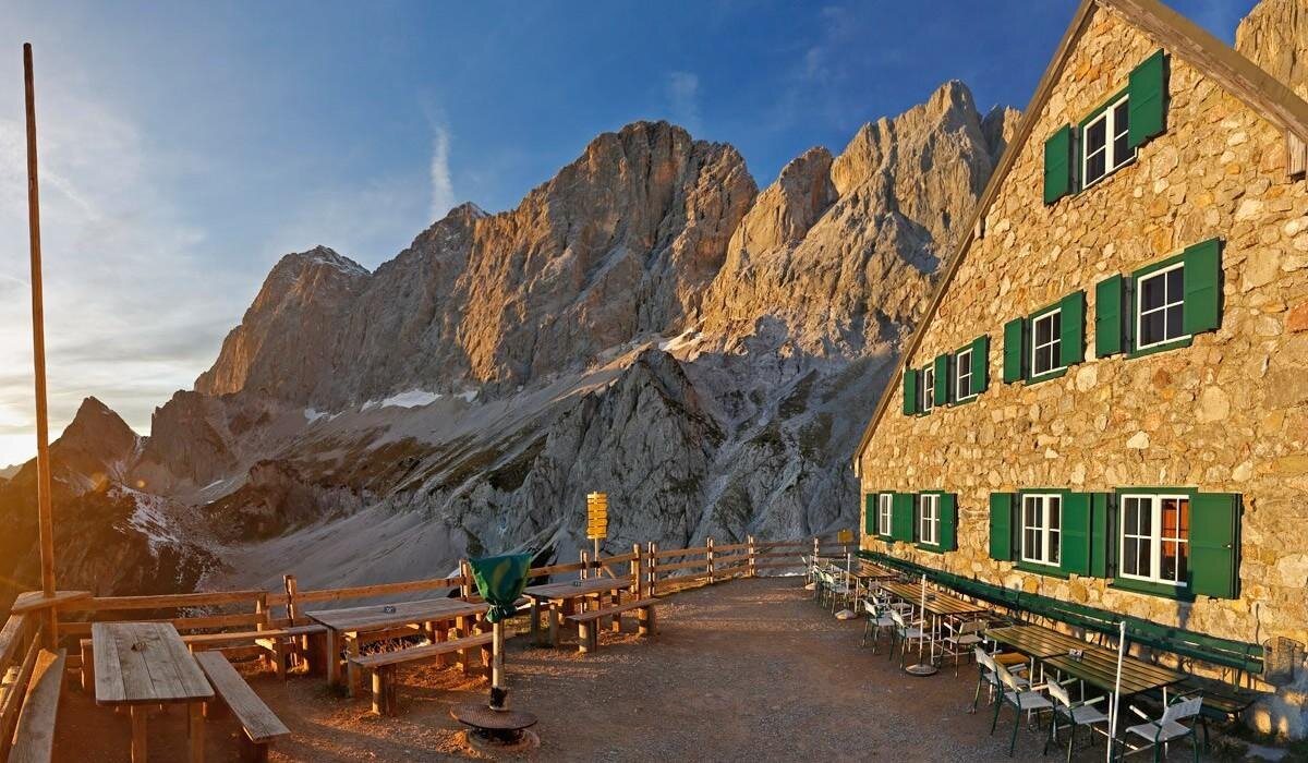 Die Dachstein Südwandhütte liegt auf 1910 m Seehöhe, im Hoch-Almengebiet der Ramsau. Genießen Sie das herrliche Panorama von unserer großzügigen Terrasse auf das imposante Massiv des Dachsteins sowie auf die Schladminger und die Radstädter Tauern. Lassen Sie sich auf unserer Sonnenterrasse oder in unseren Gasträumen mit "Speis und Trank" verwöhnen. In unserer Speisekarte finden Sie köstliche Suppen, Hauptspeisen sowie kalte Jausen.