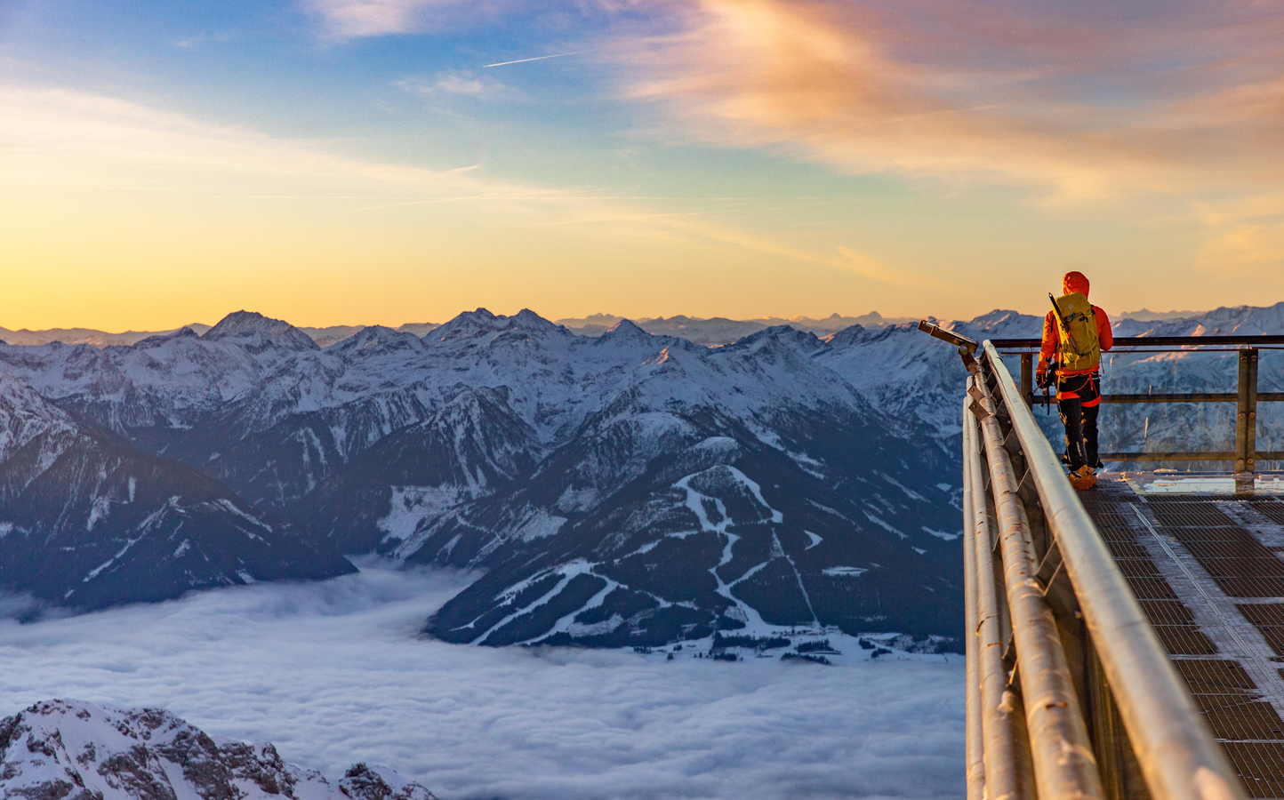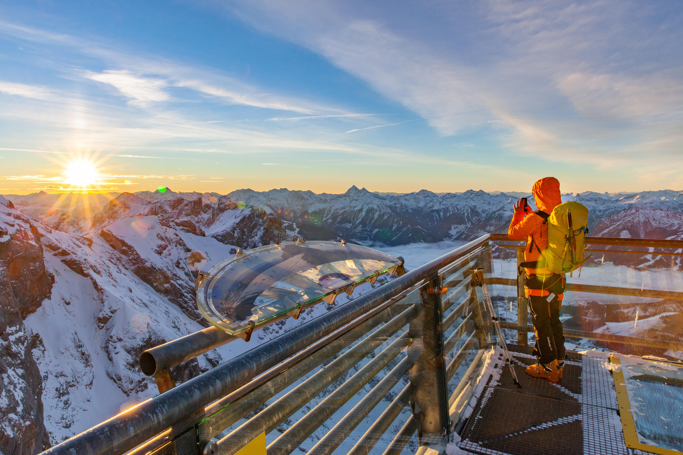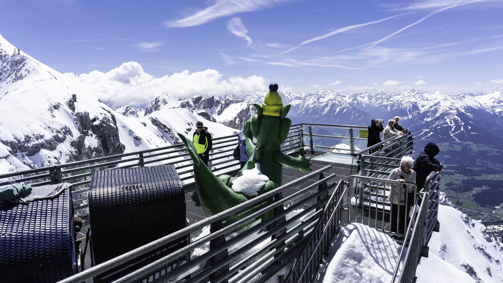 An wolkenlosen Tagen kann man eine atemberaubende Aussicht auf die Hohen Tauern und bis nach Slowenien und Tschechien genießen. Interessantes Detail: Der Dachstein Sky Walk ist mit 2700 m über dem Meeresboden deutlich höher situiert als beispielsweise die Aussichtsplattform bei den Niagarafällen oder den Iguazú-Wasserfällen in Brasilien.