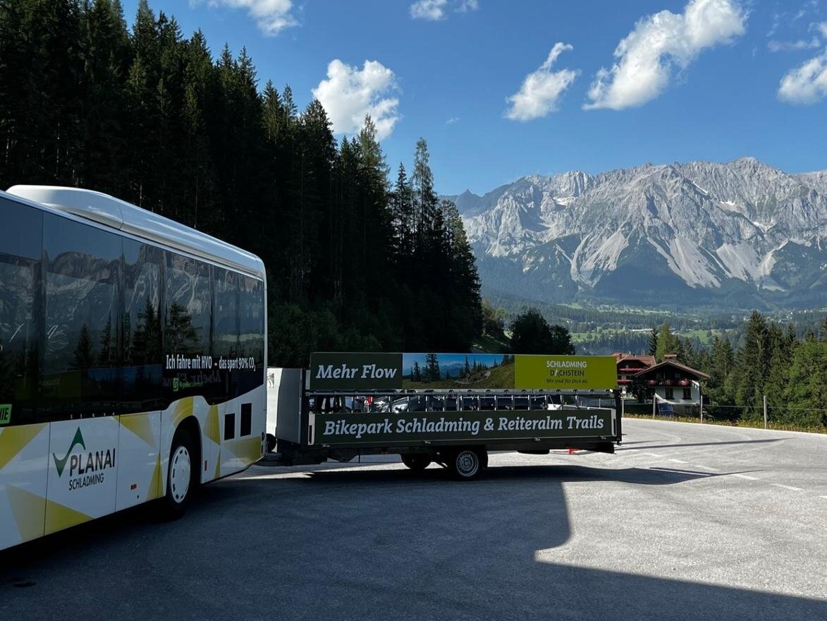 Unsere Bike- & Wanderbusse bringen dich bequem und umweltfreundlich zu den schönsten Ausgangspunkten deiner Rad- und Wandertouren in Schladming-Dachstein. Dein Fahrrad reist einfach mit und du sparst dir mühsame Anfahrten oder die Parkplatzsuche. Ob gemütliche Radtour im Tal oder sportliche Trailrunde am Berg – mit unseren Bussen erreichst du viele Ziele ohne Auto. Mit der Schladming-Dachstein Sommercard ist die Fahrt auf zahlreichen Linien sogar kostenlos. So startet dein Bike- oder Wanderabenteuer ganz entspannt schon an der Haltestelle.