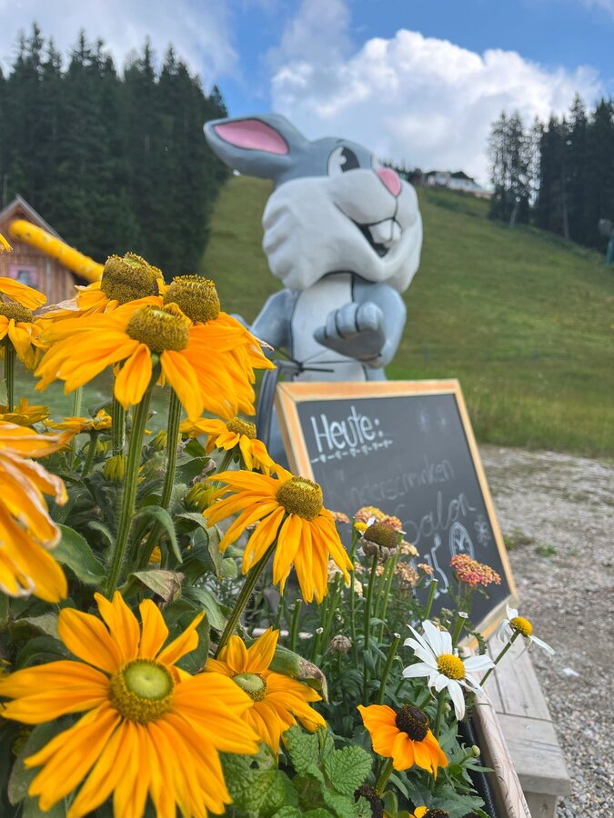 Hopsi mit Blumen | © Planai Hochwurzenbahnen - Hanna Brandstätter