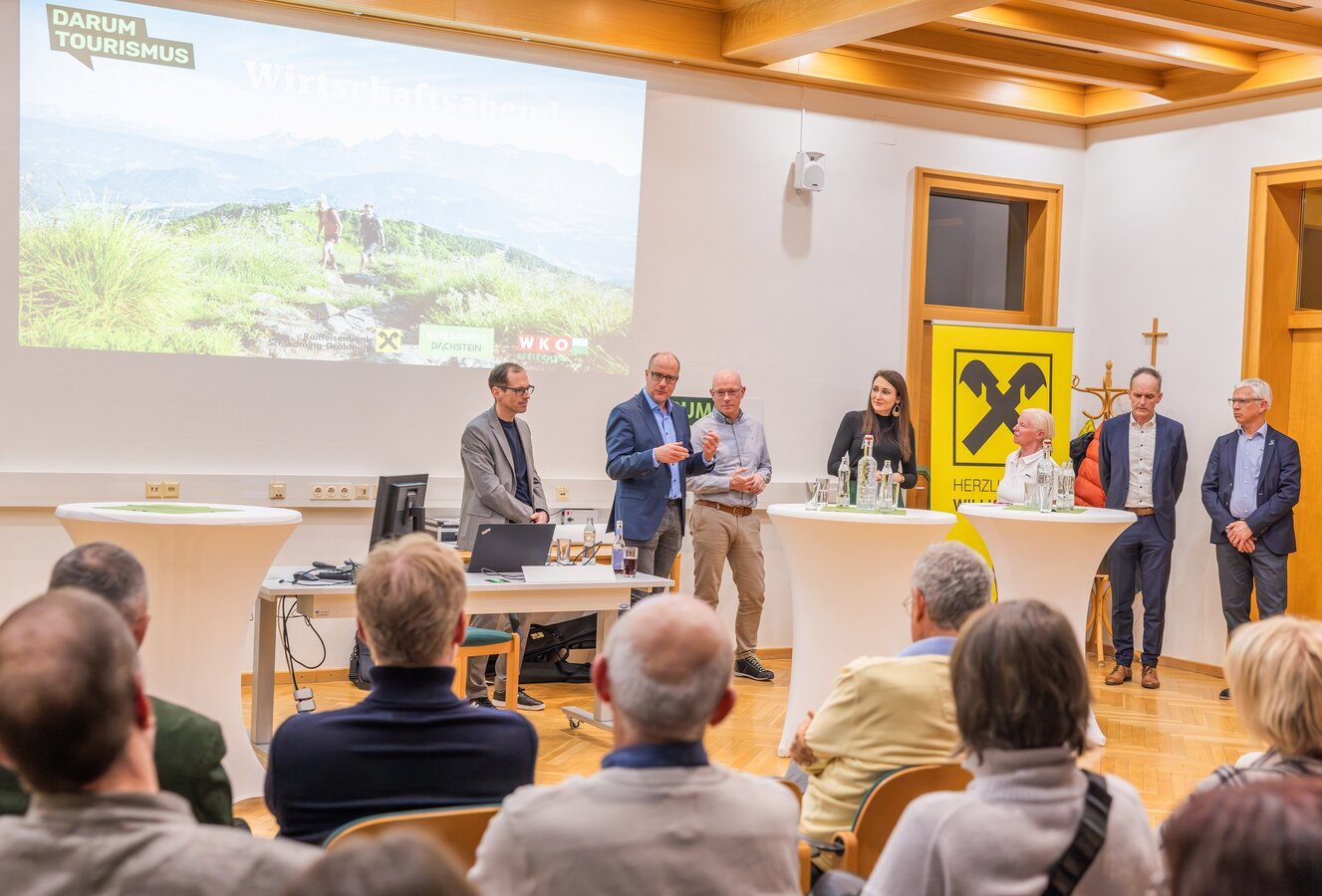 Der Tourismusverband Schladming-Dachstein hatte in Kooperation mit der Wirtschaftskammer Steiermark, Regionalstelle Ennstal/Salzkammergut und der Raiffeisenbank Schladming-Gröbming Wirtschaftsvertreter der Region zu einer Podiumsdiskussion und zum persönlichen Gedankenaustausch zum Thema Arbeitsmarkt und Senior Talents geladen. Der Abend bildete den Abschluss der zweitägigen “Darum Tourismus Wirtschaftstour”, bei der sieben Betriebe in der Region - vom Werbetechniker bis zum Abfallwirtschaftsverband, von Schladming bis Donnersbach - besucht wurden.