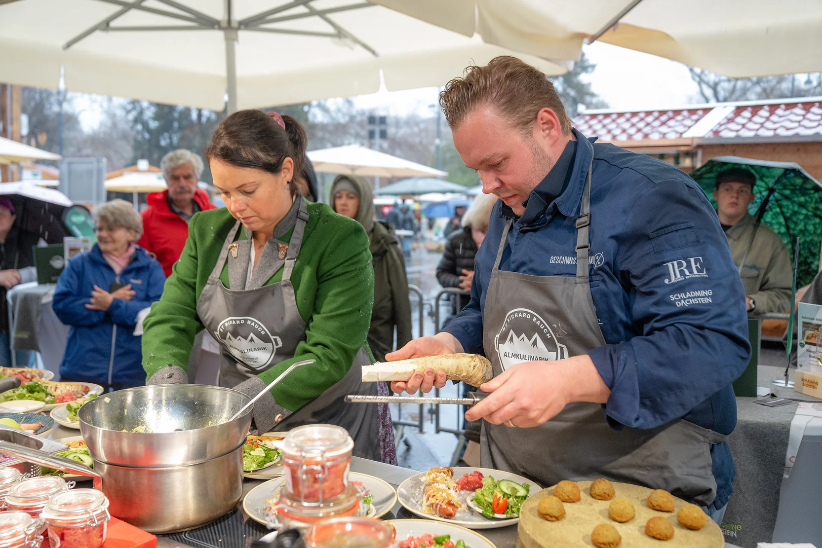 Während der gesamten Veranstaltungsdauer präsentierte sich die Region mit einem abwechslungsreichen Programm. In der Schladming-Dachstein Alm sorgten die Genussspechtwirte für kulinarische Highlights und herzliche Ennstaler Gastlichkeit. Ergänzt wurde das Angebot durch Gerichte aus dem Erfolgsprojekt „Schladming-Dachstein Almkulinarik by Richard Rauch“. Starkoch Richard Rauch persönlich war vor Ort und zauberte gemeinsam mit Lydia und Jürgen von der Sattelberghütte eine besondere Almkulinarik-Kreation für die Gäste. Auch der Pürcherhof Mitterberg und die Krapfenhütte der Landjugend Öblarn trugen mit regionalen Köstlichkeiten zur kulinarischen Vielfalt des Auftritts von Schladming-Dachstein bei. Die neue 10er-Gondelbahn am Hauser Kaibling, die ab Winter 2025/26 in Betrieb geht, war außerdem als Schaustück am Gelände zu bestaunen.