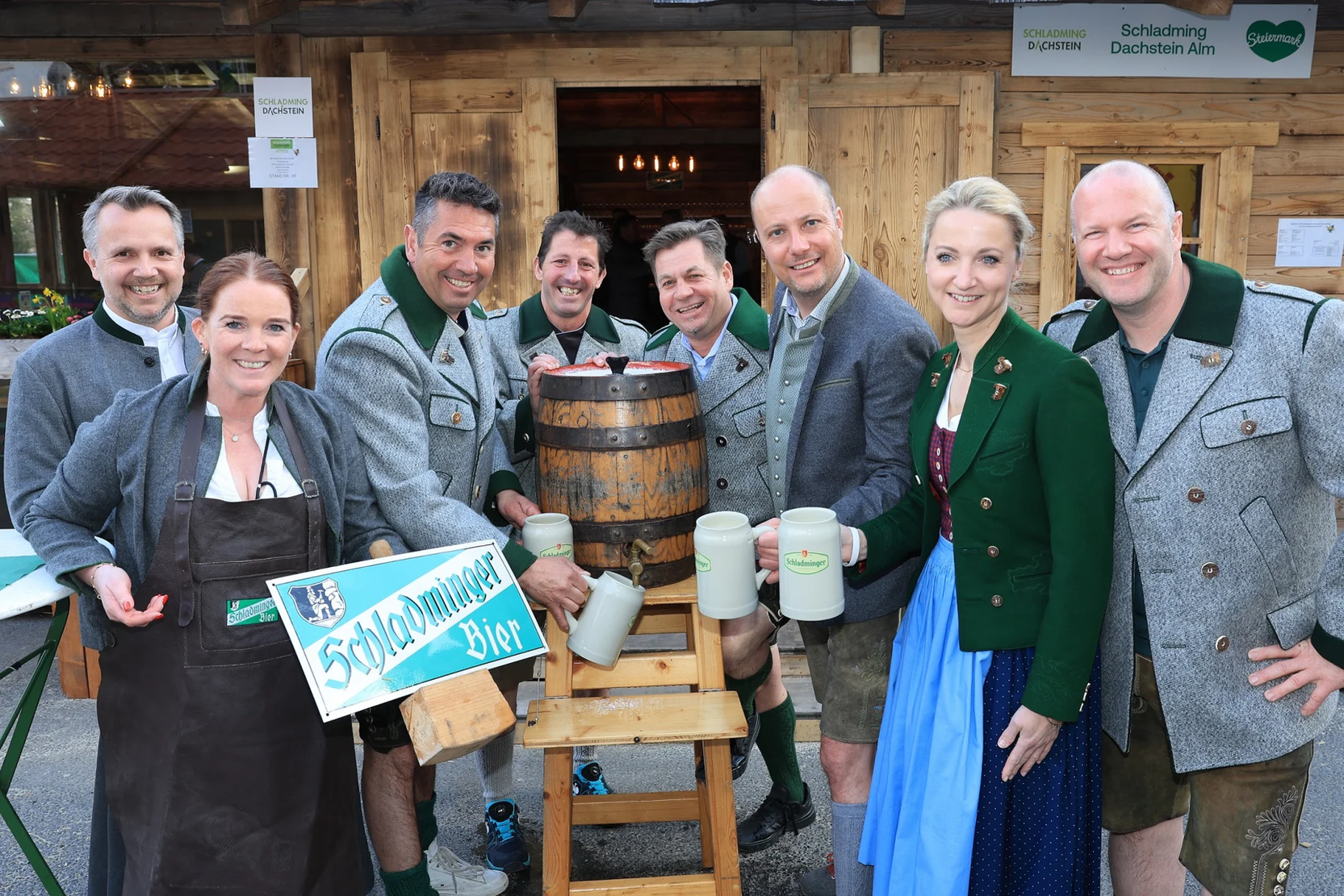 Von 26. bis 30. März war die Tourismusregion Schladming-Dachstein beim Steiermark-Frühling am Wiener Rathausplatz gemeinsam mit Steiermark Tourismus und weiteren Erlebnisregionen erneut mit einem vielfältigen und genussvollen Angebot vertreten. Als bedeutende Bühne für steirische Lebensfreude in Wien lockte die Veranstaltung heuer rund 190.000 Besucher an – mit einem abwechslungsreichen Programm und über 1.450 Mitwirkenden. Ein besonderes Highlight in diesem Jahr: Im Rahmen der Veranstaltung wurde auch wieder das traditionelle Schladminger Bier ausgeschenkt, das in der beliebten Schladming-Dachstein Alm frisch gezapft und serviert wurde. Der symbolische Bieranstich fand am Eröffnungstag direkt vor Ort statt – im Beisein von Vertreterinnen und Vertretern der Region sowie zahlreicher Gäste.
