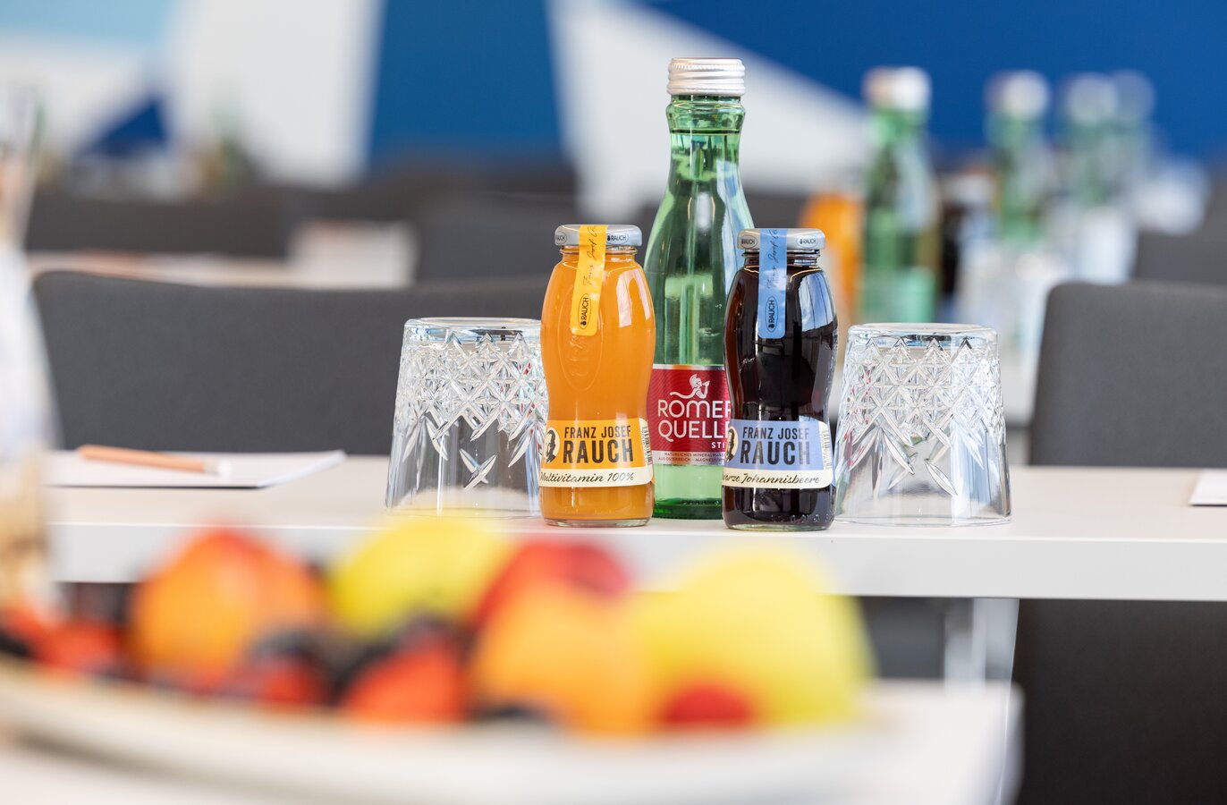 - Seminargetränke (Mineralwasser, Fruchtsäfte & Bergquellwasser) & Nussmix