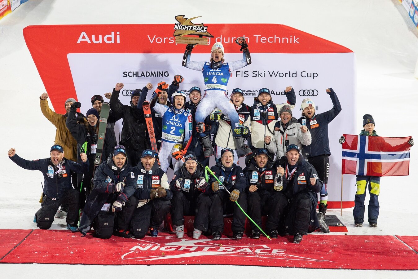 Alexander Steen Olsen hat sich am Dienstag nach dem Auftaktrennen in Sölden auch beim Flutlichtspektakel auf der Schladminger Planai den Sieg geholt. Der Norweger setzte sich vor seinem Landsmann Henrik Kristoffersen und dem Schweizer Superstar Marco Odermatt durch. Stefan Brennsteiner fehlten als Fünftem nur neun Hundertstel auf das Stockerl.