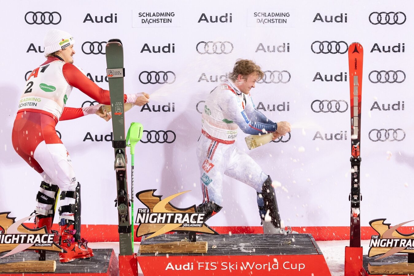 Manuel Feller und Fabio Gstrein haben bei der Generalprobe für die WM in Saalbach für einen Befreiungsschlag der österreichischen Slalom-Fahrer gesorgt. Das Duo landete am Mittwoch beim traditionellen Nightrace in Schladming auf den Plätzen zwei bzw. drei und sorgte damit für die ersten Slalom-Podestplätze in Rot-Weiß-Rot in dieser Saison. Einzig der Norweger Timon Haugan stand einem österreichischen Doppelsieg im Weg.