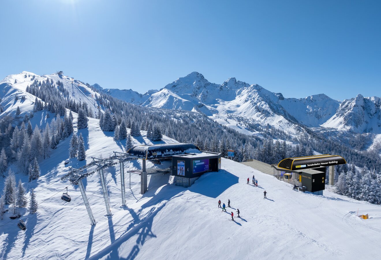 Die neue Gondelbahn ersetzt die bisherige 4er-Sesselbahn und bringt Wintersportler in unter fünf Minuten direkt zum Senderplateau – nur eine Fahrt vom höchsten Punkt der Skischaukel entfernt.