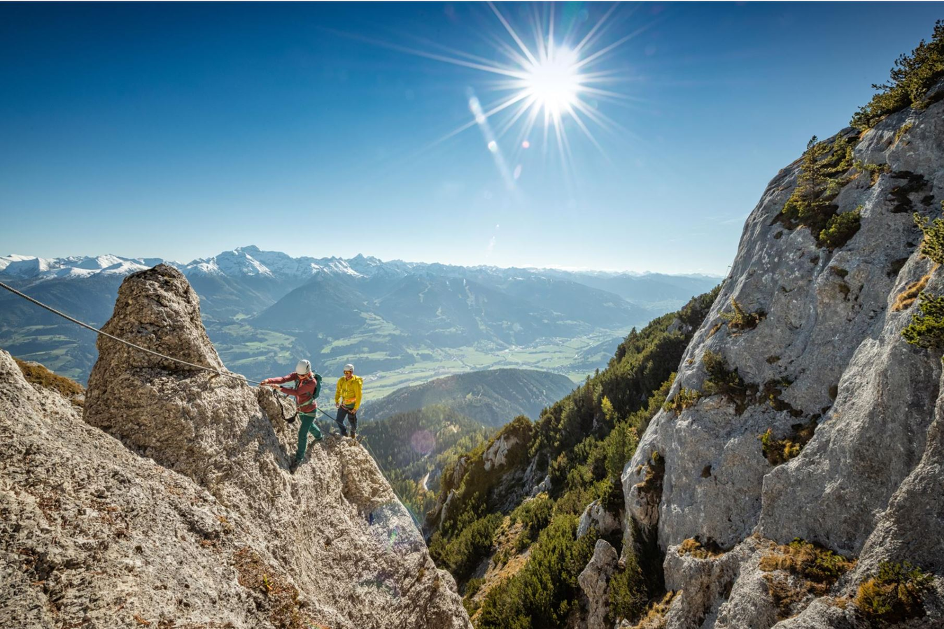 - Klettersteig-Touren sind kraftraubend und erfordern Kondition, Schwindelfreiheit und Trittsicherheit.