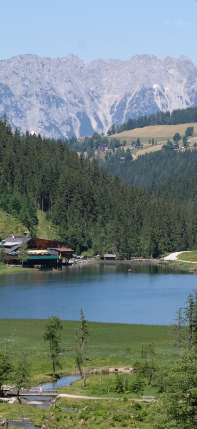 Der Steirische Bodensee ist ein wahres Paradies für Naturliebhaber und der ideale Ausgangspunkt für Wanderungen in allen Schwierigkeitsgraden. Ob gemütlicher Spaziergang entlang des Seeufers, aussichtsreiche Bergtour zur Hans-Wödl-Hütte am Hüttensee oder anspruchsvolles alpines Abenteuer auf die Hohe Wildstelle oder den Höchstein – hier findet jeder seine persönliche Lieblingsroute.