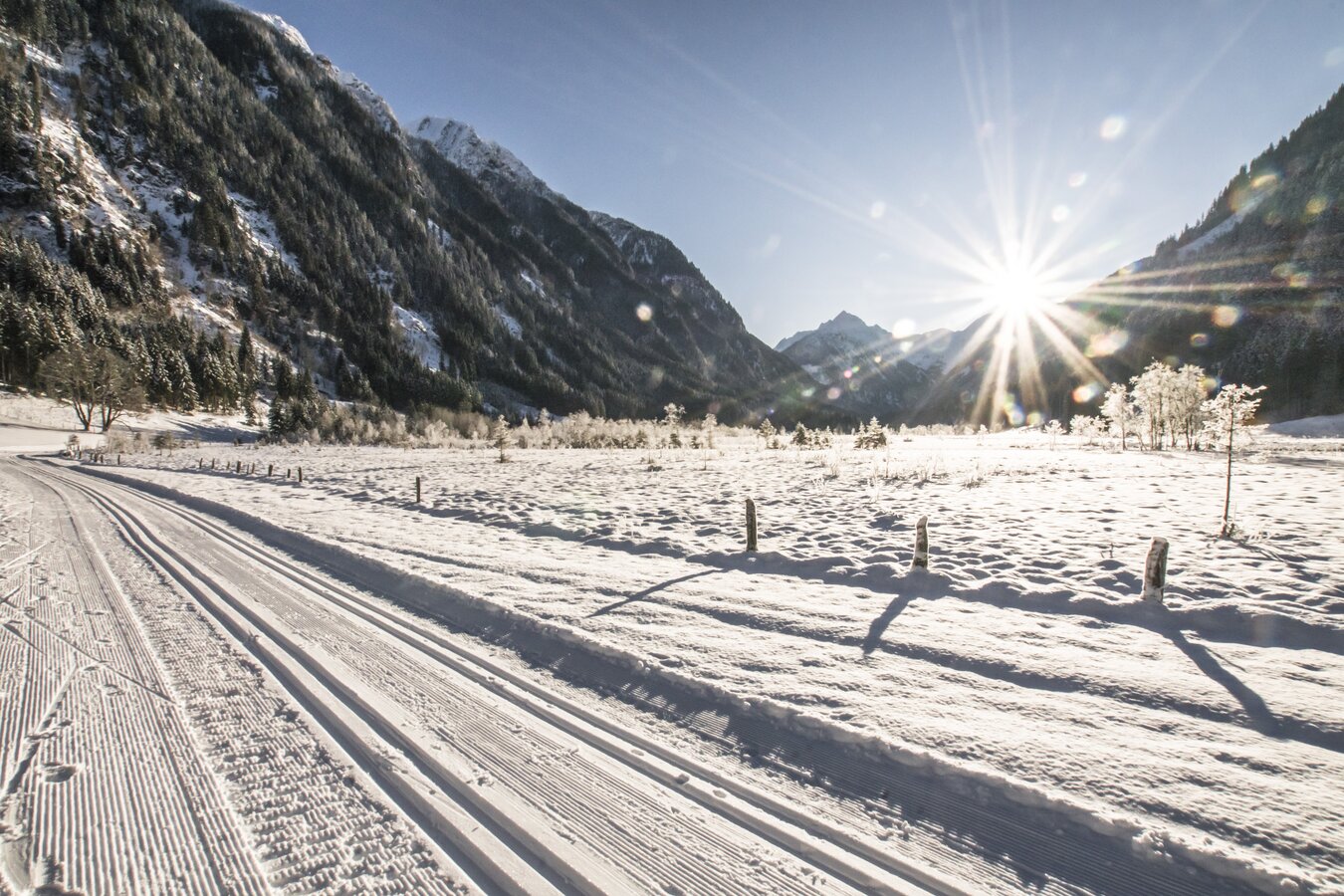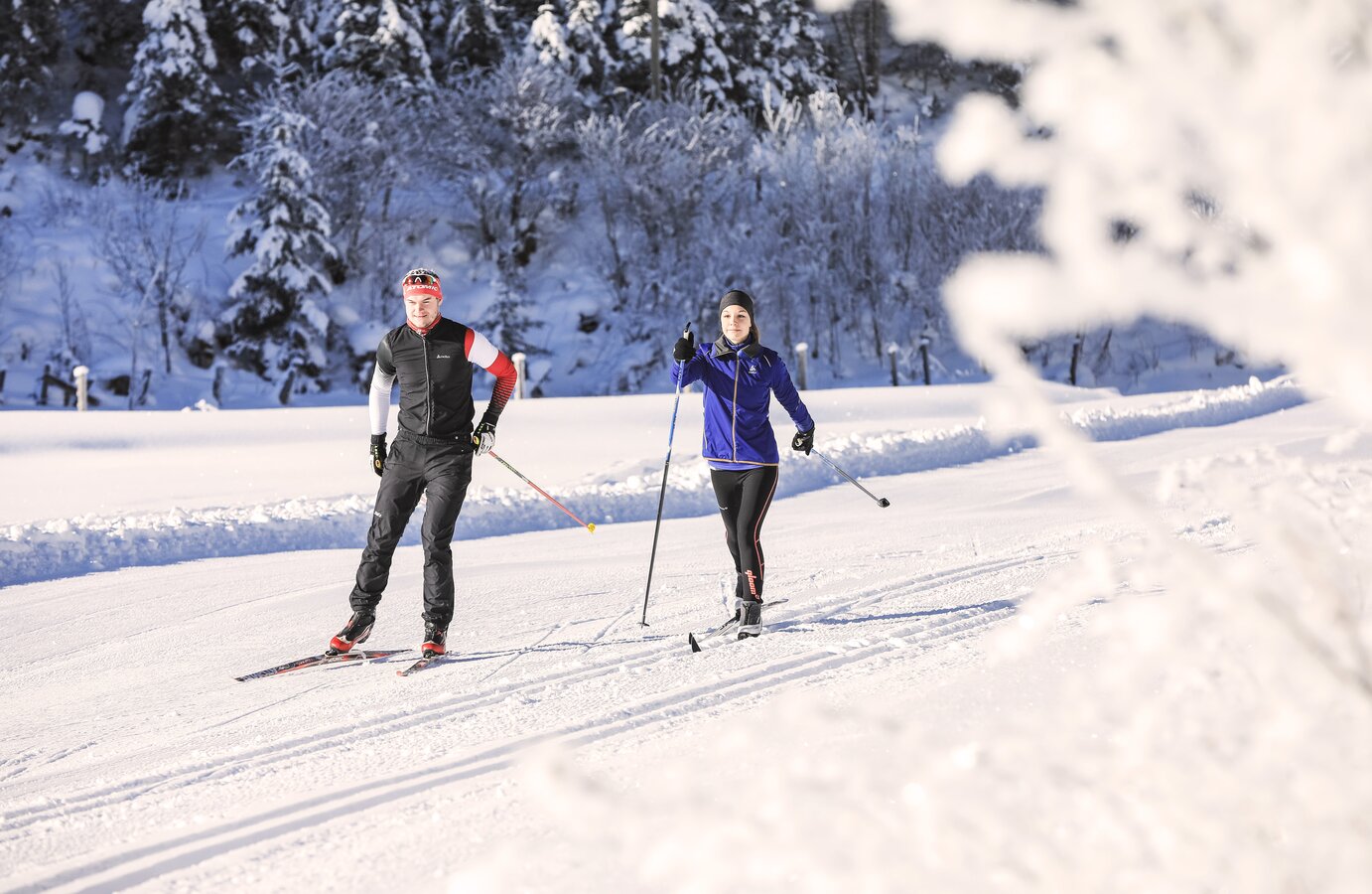 Ob klassisch oder skating – die Loipen führen durch weite Täler und stille Winterlandschaften, umgeben von der imposanten Bergkulisse der Schladminger Tauern.