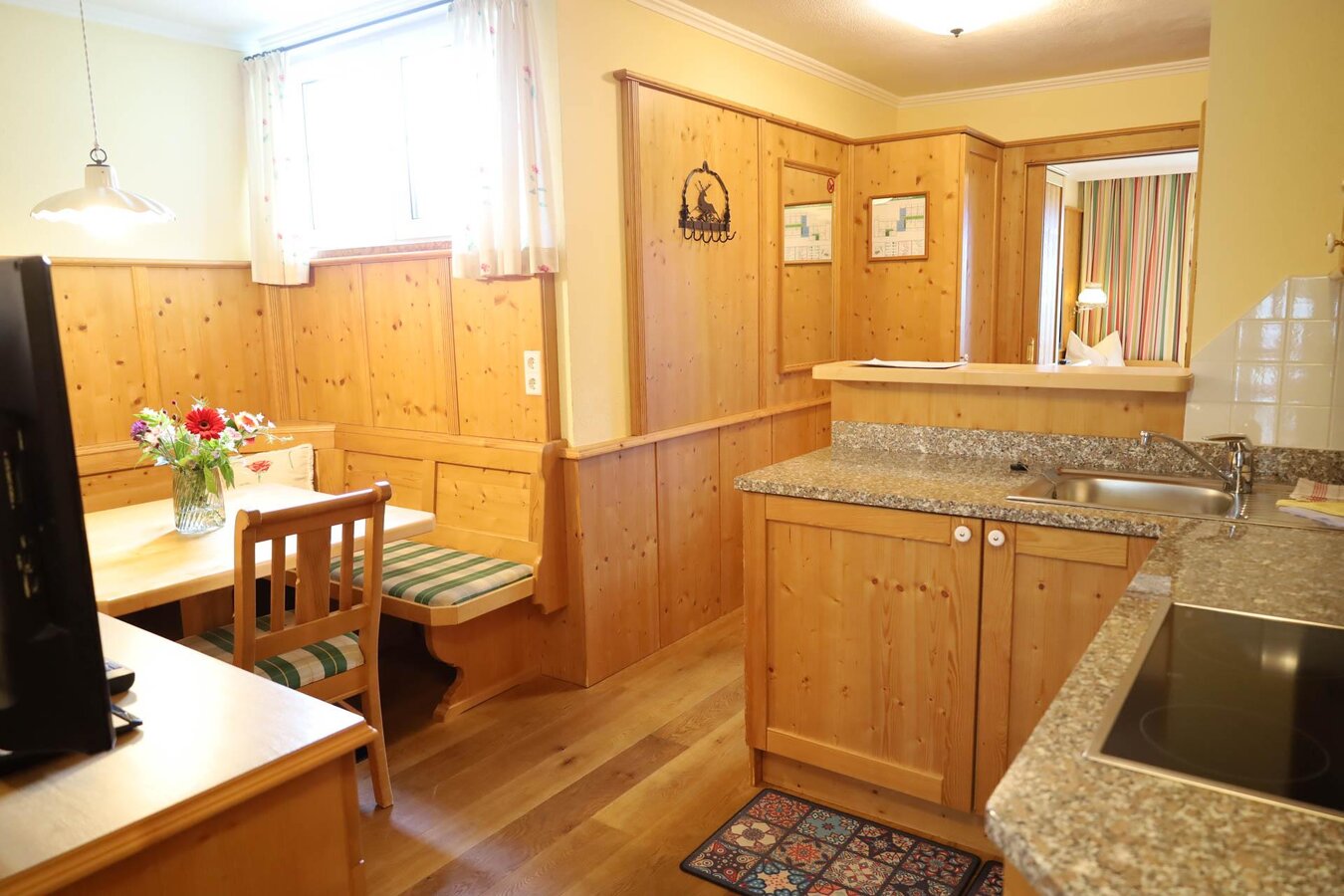 Unsere komplett eingerichteten und komfortablen Ferienwohnungen für 2-5 Personen bieten Ihnen einladende Schlafzimmer, moderne Badezimmer mit separatem WC, einen großen Wohnschlafraum mit Balkon und wunderschönem Panoramablick auf die umliegende Berglandschaft. In der voll ausgestatteten Küche mit gemütlicher Sitzecke genießen Sie gesellige Urlaubstage mit Freunden und Familie. Jede Ferienwohnung ist auch mit unserem köstlichen Frühstück oder Halbpension buchbar.