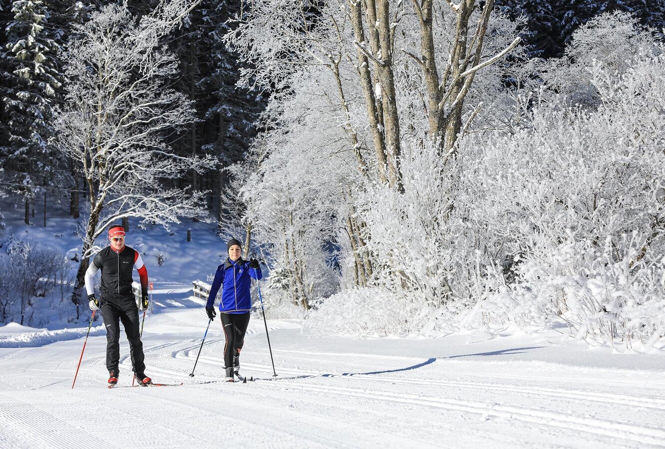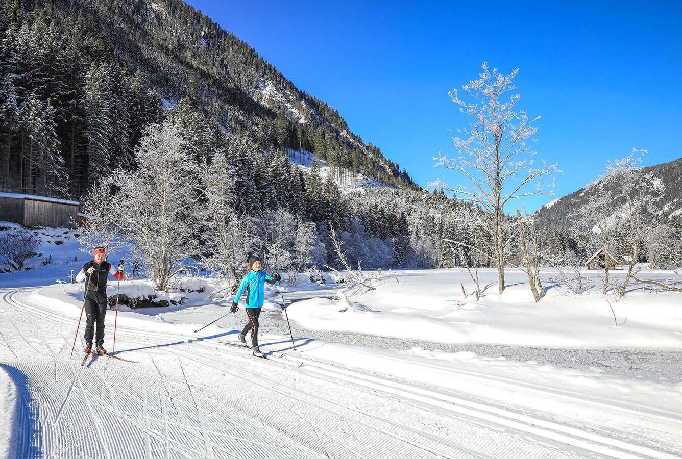 Ein 1,2 km langer Abschnitt auf der klassischen Kristallloipe talauswärts bringt Dich zur Tettermoor Skating-Loipe. Auf dem Weg liegt die Waldhäuslalm.