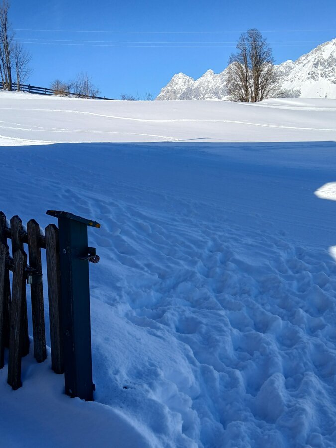 Im Winter befindet sich bereits direkt vor unserem Haus der Einstieg in die legendäre 4-Berge-Skischaukel. Nahezu unbegrenztes Skivergnügen auf bestens präparierten Pisten erwartet Sie. Auch abseits der Piste warten im Winter zahlreiche Aktivitäten auf Sie. In nur wenigen Minuten gelangen Sie zum Einstieg von herrlichen Langlaufloipen und auch das Langlaufeldorado Ramsau am Dachstein ist nur 10 Autominuten von unserem Haus Alpenblick entfernt. Rodelliebhaber kommen mit der nachts beleuchteten Naturrodelbahn der Hochwurzen vollends auf ihre Kosten. Ein Schmankerl für alle Rodler: mit den eigenen Rodeln gelangen Sie über den Skiweg direkt zu unserem Haus.