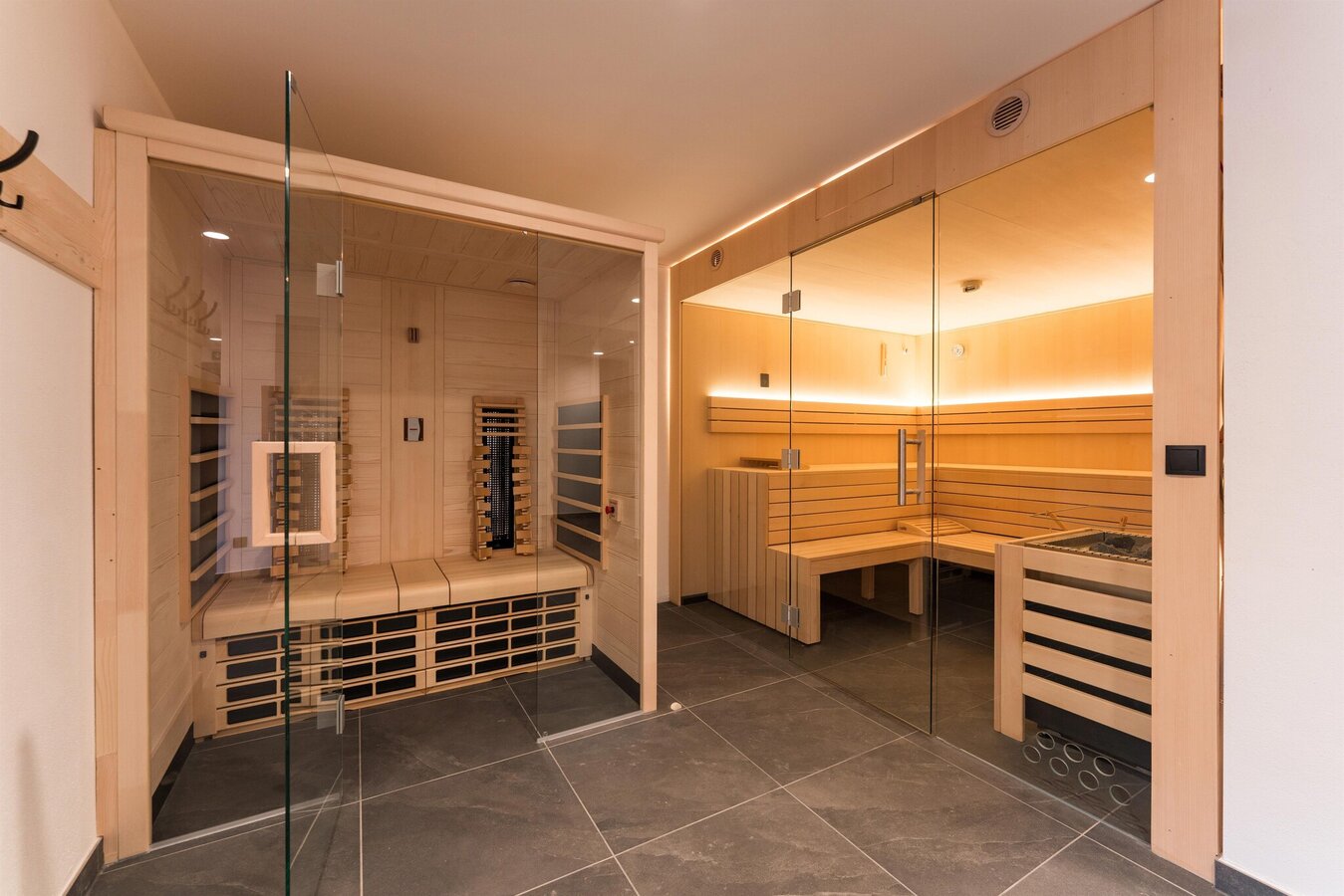Das außergewöhnliche Design umhüllt dich sanft, während du neue Energie tankst, loslässt und den Augenblick in vollen Zügen genießt. Unser exklusives Wellness- und Fitnessangebot erfüllt selbst höchste Ansprüche – mit entspannenden Saunen, finnische und infrarot und einem modernen Fitnessbereich für anspruchsvolle Gäste. Hier findest du alles, was du für pure Erholung und aktiven Genuss brauchst.