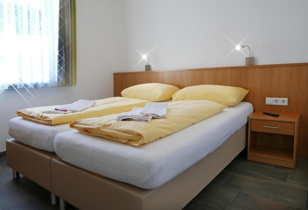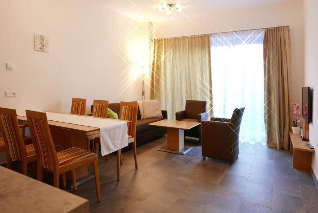 In unseren Apartments zur Selbstverpflegung erwarten Sie ein Balkon oder Terrasse mit Bergblick, jeweils 3 Flachbild-Kabel-TVs sowie ein Wohnbereich mit einer voll ausgestatteten Küchenzeile und einem Essbereich. Sie verfügen außerdem über jeweils 2 Doppelzimmer und ein eigenes Bad mit einer Dusche.