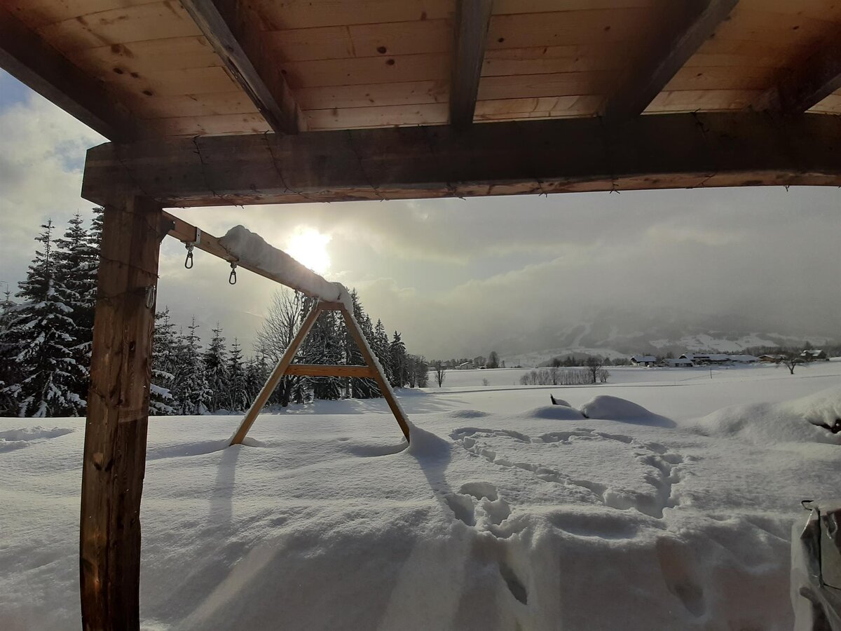 Die nicht einsehbare Südterrasse ist der ideale Ort, um die Sonne sowie die Aussicht in die Bergwelt bei einem Kaffee oder dem einen oder anderen Glaserl zu genießen.