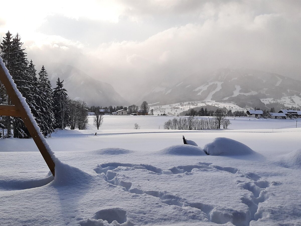 Das Apartment mit atemberaubendem, freien Panoramablick in die Bergwelt der Schladminger Tauern inklusive der Skiberge der Skiregion Schladming Dachstein liegt nach Süden ausgerichtet in absoluter Grünruhelage direkt am Waldrand des Ramsauer Kulmberges.