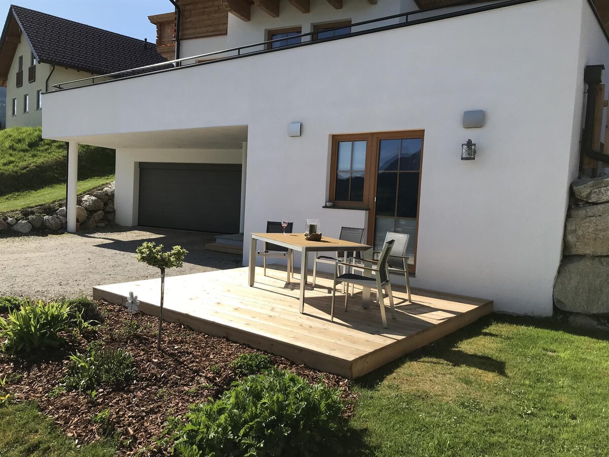 Weiteres bieten wir Ihnen Ihre eigene Sonnenterasse mit herrlichen Ausblick auf die Bergwelt welche Sie am morgen schon genießen oder am Abend bei Sonnenuntergang gemütlich ausklingen lassen können.