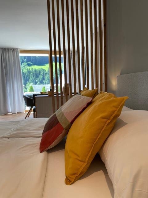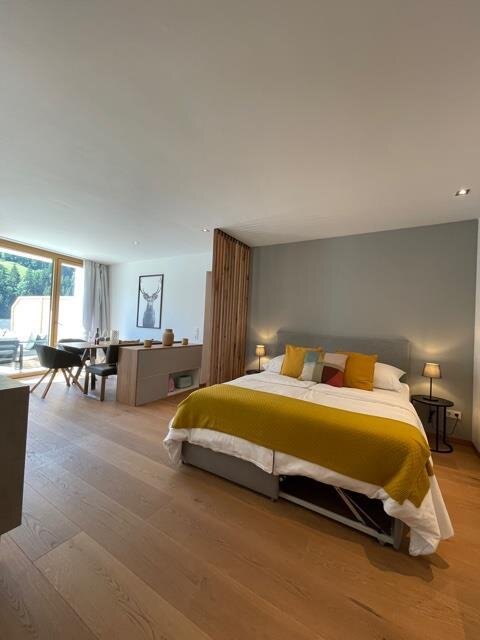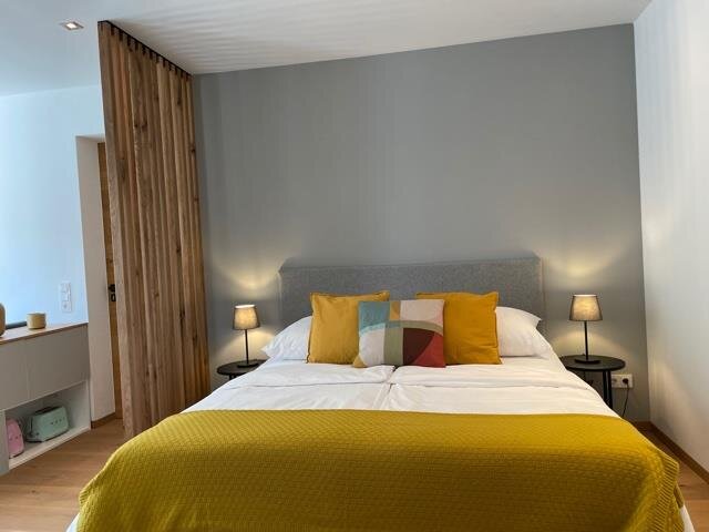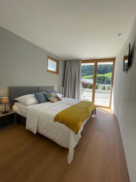 Die Ausstattung ist luxuriös und hochwertig: Holzboden aus Eiche natur, großzügige Holz Alu Panorama Fenster, Duravit, Hans Grohe Badausstattung, Villeroy und Boch Toilette, komplett eingerichtete DAN Küche mit neuen Siemens Geräten inklusive Geschirrspüler und Segafredo Espresso Maschine, Flat Screen, Free W-Lan, Smart TV,...