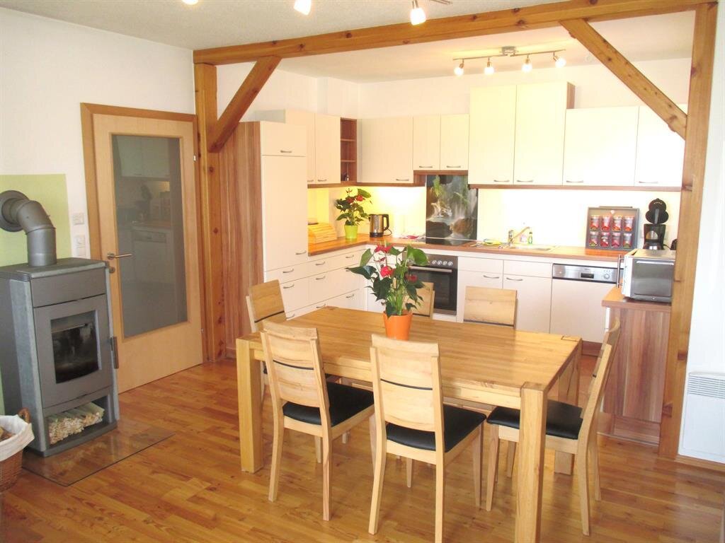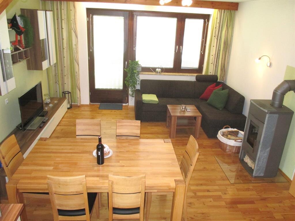 Das Appartement (1. Stock) verfügt über: 1 Doppelzimmer, 1 Schlafzimmer mit ausziehbarer Couch, Vorraum, Abstellraum, Badezimmer mit DU/Bad und Waschmaschine, WC, große Wohnküche (voll ausgestattet) mit großem Esstisch und Couch (ebenfalls ausziehbar), Teebar, Schwedenofen, TV, WLAN, Gesellschaftsspiele, Balkon Richtung Osten.