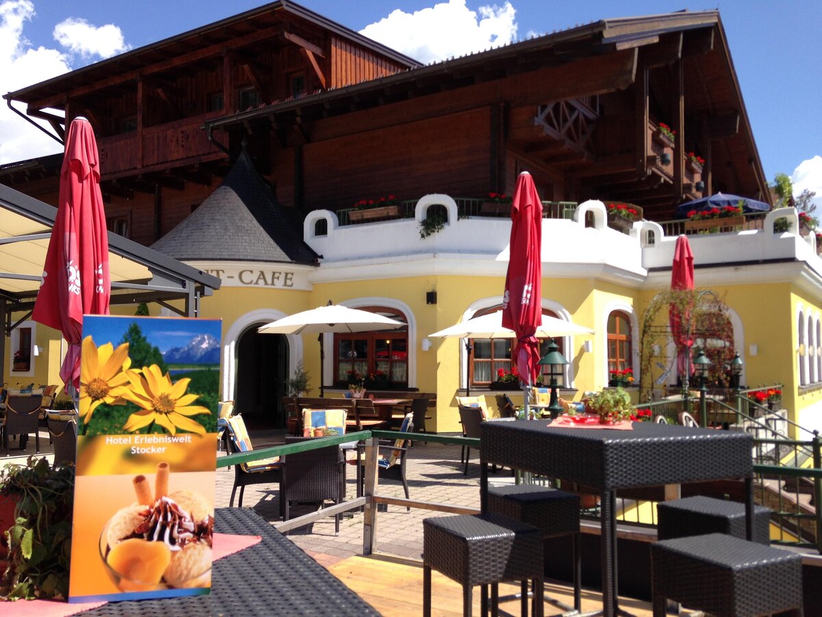 Auf der Sonnenterrasse und dem (beheizten, überdachten) Biergarten genießt man das ganze Jahre über einen Panoramablick auf die Schladminger Bergwelt und den Dachstein.