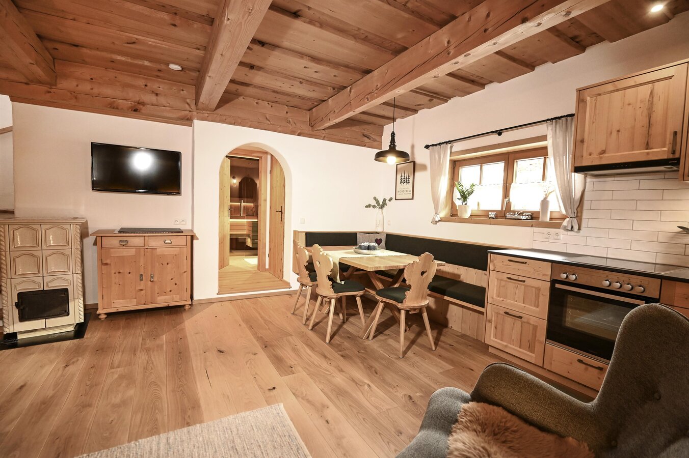 Unser Zuahäusl bietet romantischen und lieblichen Wohnkomfort verbunden mit ländlichem Flair und dem gewissen Etwas! Das Haus ist eingeteilt in Vorraum, Wohnraum mit Kochecke, 2 Schlafzimmer, Badezimmer, WC, weiteres WC im Obergeschoß, Sauna; sowie Balkon und Terrasse.