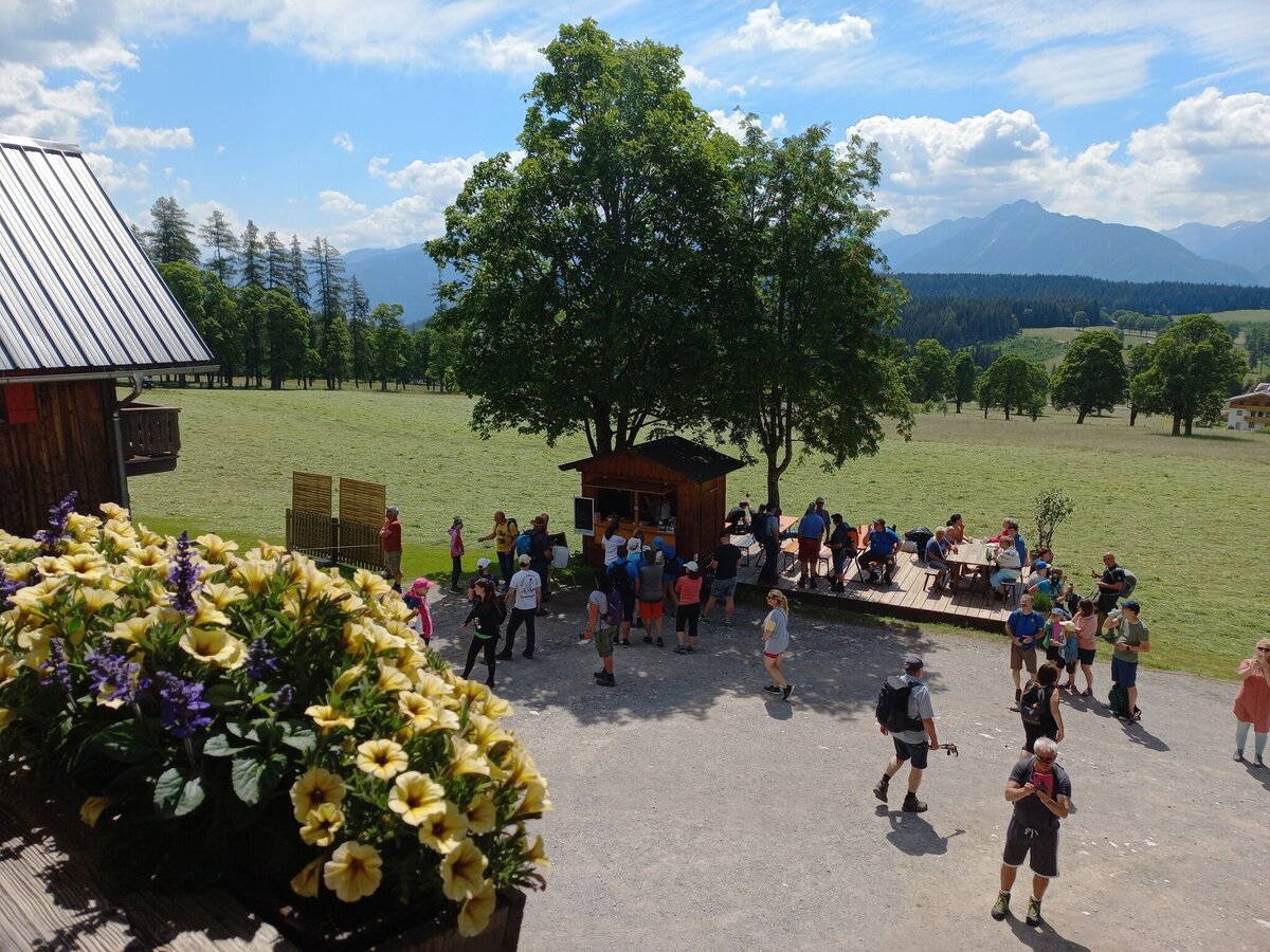Nach einer kurzen Rast nimmst Du den Weg zurück zum Hotel Lindenhof, spazierst dort aber gerade aus weiter, vorbei am Ramsbergerhof und über einen kleinen Bach hinüber zum Feldlhof. Dort wanderst Du die Straße hinunter und gelangst wieder auf die Friedhofsstraße. Zum Abschluss empfiehlt sich ein Besuch in der impossanten evangelischen Kirche Ramsau oder im Museum Zeitroas.