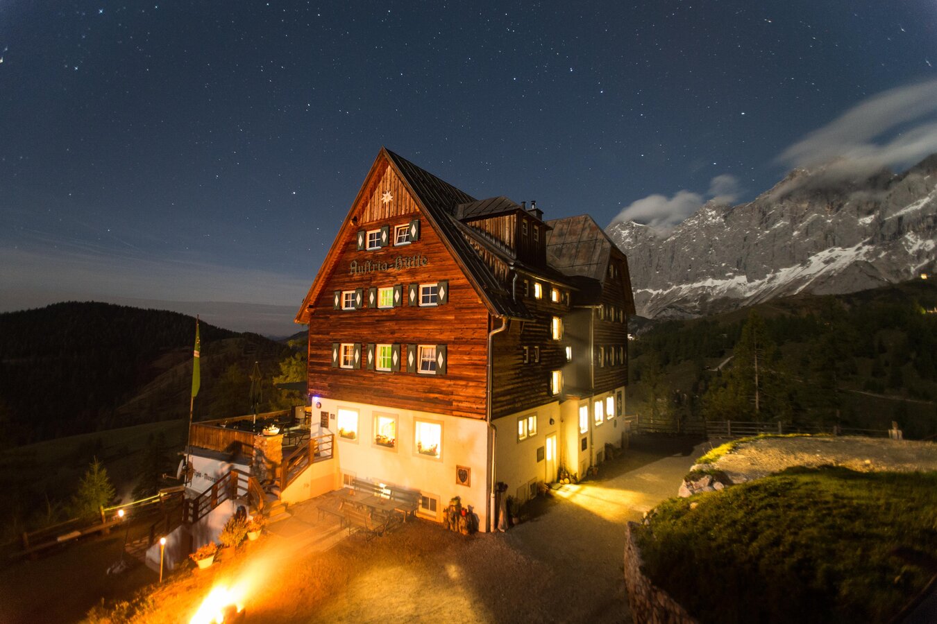 Die Austriahütte ist immer einen Besuch wert. Sie bietet gutes Essen, eine schöne Atmosphäre, Schlafplätze, das Dachsteinmuseum und vieles mehr.