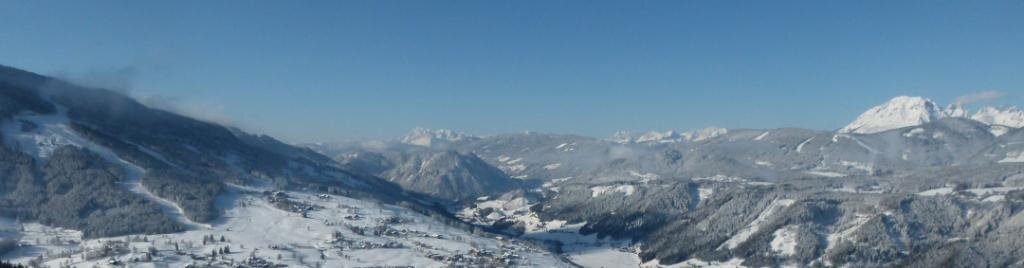 Einzigartiger Panoramablick vom Hochkönig, Tennengebirge, Bischofsmütze und das gesamte Dachsteingebirge bis zum Stoderzinken.