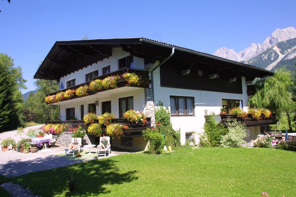 Unsere Pension ist ein mit 4 Kristallen ausgezeichnetes Haus der Sonderklasse in sonniger, ruhiger Lage nahe dem Ortszentrum von Ramsau am Dachstein. Die Bushaltstelle zum Skigebiet Ski amadé mit der 4-Berge Schischaukel Hauser Kaibling, Planai, Hochwurzen und Reiteralm liegt nur ein paar Schritte entfernt.