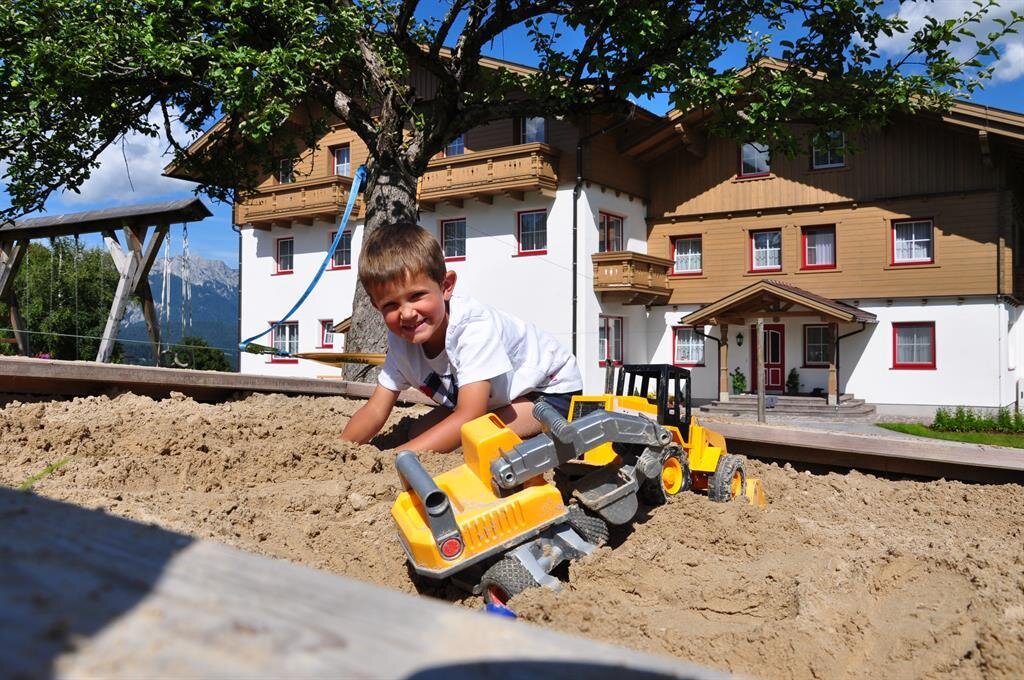 Im Sommer laden eine Tischtennisplatte zu heißen Matches und das kleine Bächlein vor dem Haus zum Füße-Abkühlen ein. Für die Kinder gibt es zwei Sandkisten, Schaukeln, eine höhenverstellbare Reckstange und unseren kleinen Fuhrpark mit Kinderfahrrädern, Rollern, Tret-Traktor und Bobby-Cars.