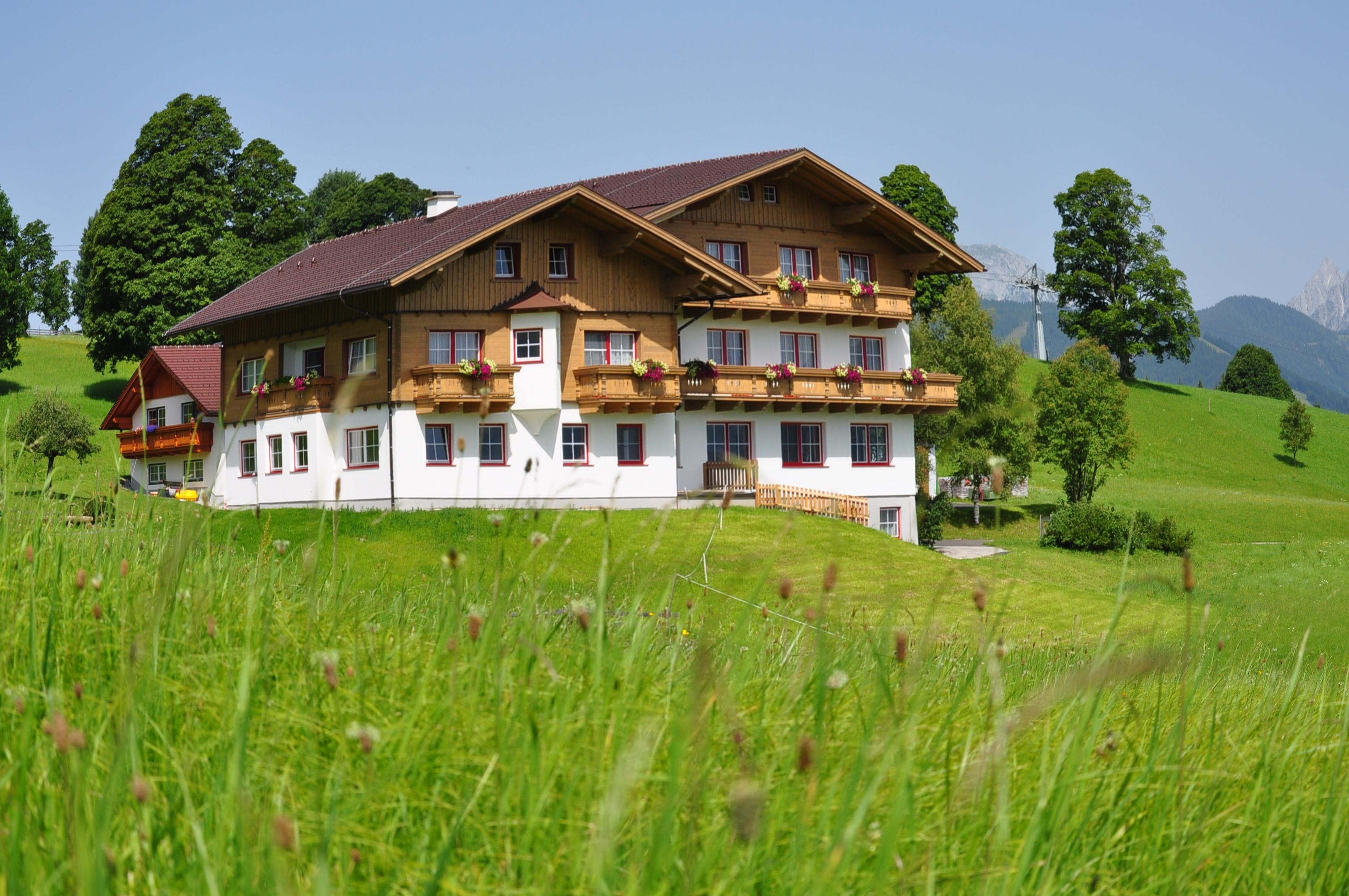 Unsere familiär geführte Bio-Pension befindet sich auf 1.100 m Seehöhe in sonniger Lage in Schladming (Ortsteil Rohrmoos) inmitten eines beeindruckenden Bergpanoramas!