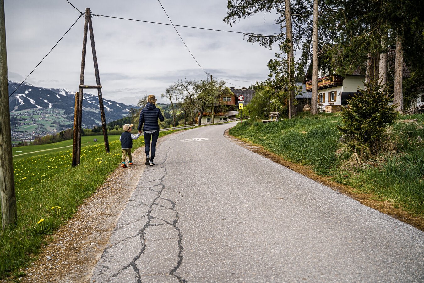 Wenn du etwas länger Zeit und Lust hast, kannst du den Rundweg verlängern: durch das Untere Dörfl weiter bis zur Wegkreuzung beim Pircher-Hof - hier über den oberen Weg zurück Richtung Oberes Dörfl. Diese Variante nimmt etwa zusätzliche 45 Minuten in Anspruch.