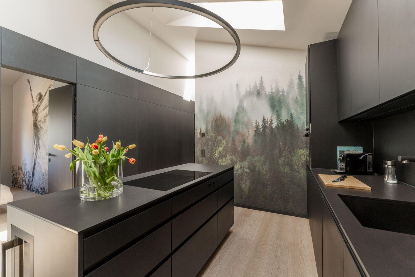 Eine harmonische Farbenvielfalt, hochwertige Designermöbel, edle und hochwertige Materialen & Tapeten machen das Apartment zu einem einzigartigen Gesamtkunstwerk, das Sie in Schladming kein zweites Mal finden. Design mit Wohlfühlfaktor auf höchstem Level! Sommer wie Winter garantieren die Terrassen nach Westen und Osten einen umwerfenden Blick mit Morgensonne und Sundownereffekt.