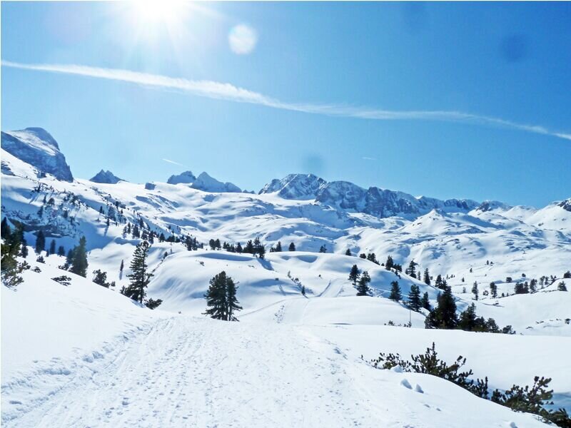 Variante: Bei dieser Skitour lassen sich viele Varianten einbauen (für die Tourenausrüstung notwendig ist). Möglich sind zum Beispiel eine Abfahrt zum Eissee und der kurze Aufstieg zur Simonyhütte. Etwas länger ist der Aufstieg zum Hohen Trog und die Abfahrt durchs wilde Weittal nach Hallstatt. Ebenfalls beliebt ist der Abstecher zum Wiesberghaus und die Tiergartenabfahrt, die durchs Echerntal nach Hallstatt führt.