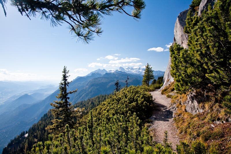 Wir gehen vom Steinerhaus bergab und folgen weiter dem Weg 618. Über große Wurzeln und unebenen Boden laufen wir ein ganzes Stück bis rechts von uns, unterhalb des Kimpflingsattels die Abzweigung zur Notgasse des Wegs 618 liegt. Hier müssen wir genau schauen, da die Abzweigung zwar beschildert, jedoch trotzdem leicht zu übersehen ist. Von hier aus gehen wir noch ca. 30 Minuten bis zur eigentlichen Notgasse, eine beeindruckende Klamm mit bis zu 60m hohen Felswänden und historischen Felsritzbildern. Wir folgen dem Pfad durch die Schlucht, bis wir einen Forstweg erreichen, dem wir bis zur Brandalm folgen. Weiter entlang des Weges laufen wir an der Viehbergalm vorbei in den Wald - dieser Abschnitt wird auch „Bettlersteig“ genannt. Der weiterführende Weg ist als Dachstein Rundwanderweg markiert und führt über den Gipfel des Hochmühleck und über die Goseritzalm immer bergab durch den Wald bis zur Steinitzenalm.