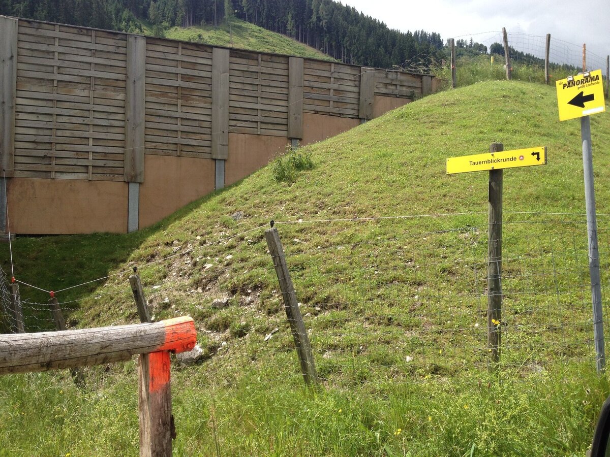 Die Hochstraße war einst ein von den Römern angelegter Weg (deshalb der Name der Spazierrunde, die hier entlang läuft). Du querst die Landesstraße Ramsau und folgst weiter der Beschilderung entlang der Hochstraße bis Du unterhalb der Reitsportarena Schladming nach links bergab zum Stegerhof läufst.