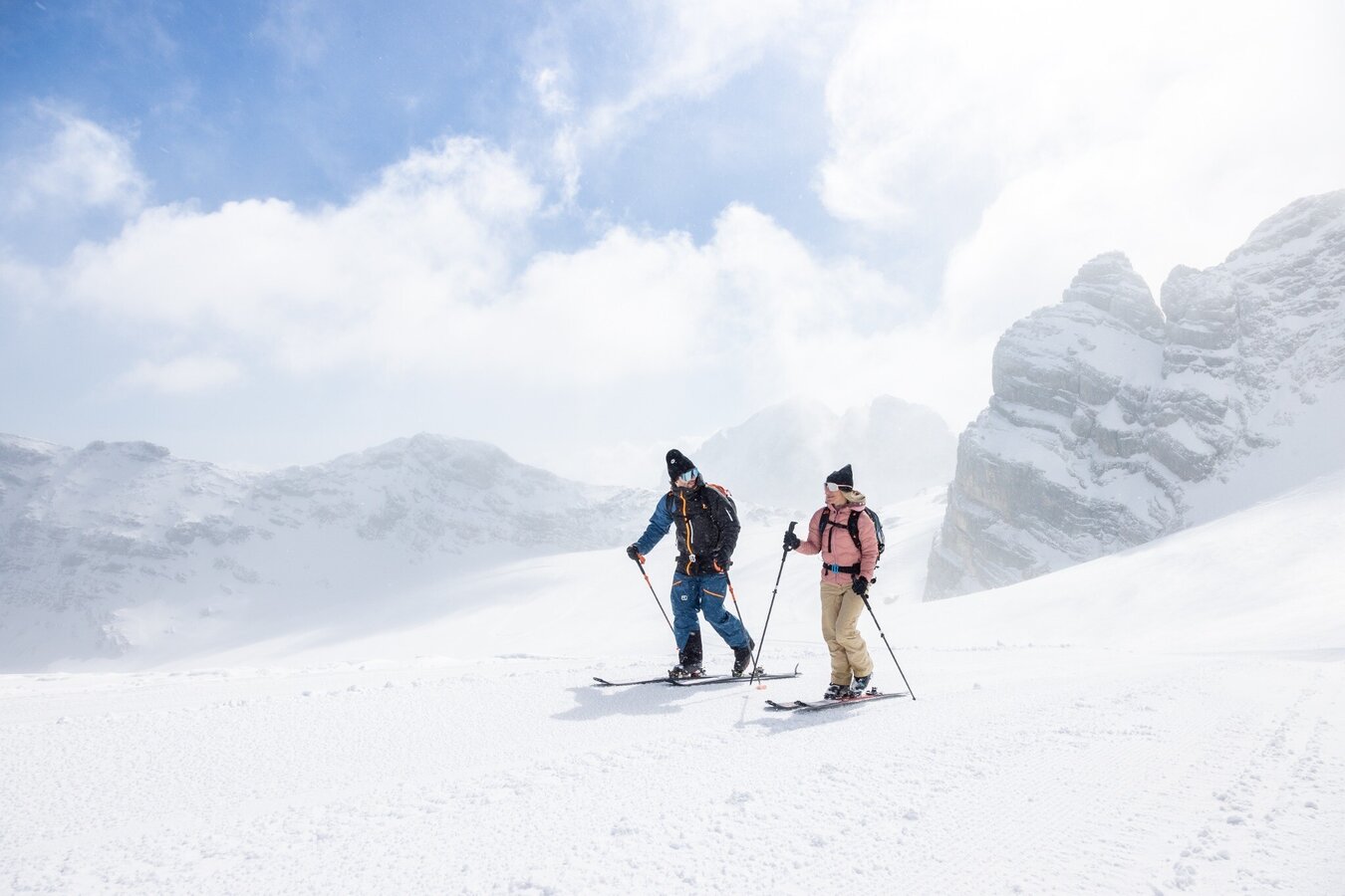 Selbstverständlich findest du in Schladming und in der Ramsau/Dachstein viele Anbieter, die dich beim Start in deine Skitourenkarriere unterstützen und die richtige Aufstiegs- und Abfahrtstechnik vermitteln, oder bei anspruchsvolleren Unternehmen deine Tourenplanung übernehmen und dich sicher durch das hochalpine Gelände führen.