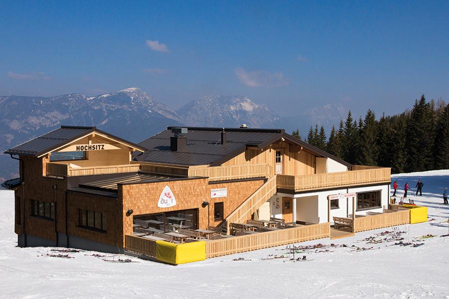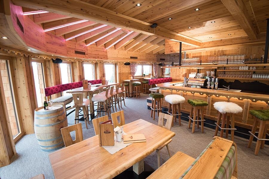 Besonders die Schirmbar, sowie der Lounge-Bereich mit Panoramafenstern lädt zum Verweilen ein. Aber auch am sogenannten Hochsitz im Liegestuhl mit Blick auf die Piste vergehen die Stunden wie im Flug. Genuss pur.