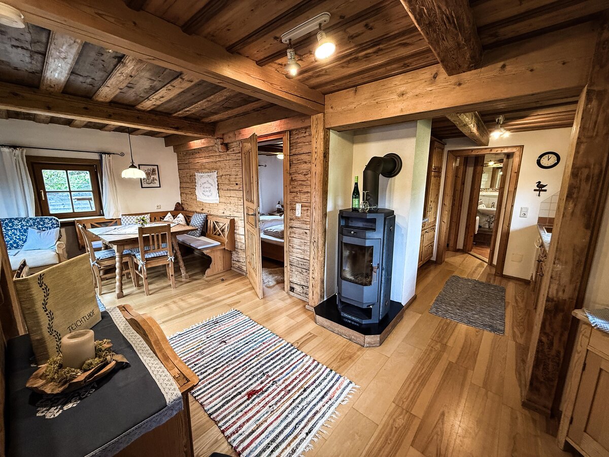 In unserem „Feichtlhäusl“ erleben Sie pure Gemütlichkeit: zwei Schlafräume, traditionell eingerichtet, einen Wohnraum mit Essecke und einer vollständig eingerichteten Küche und vor allem den behaglichen Kaminofen, zugleich Wärmequelle für Körper und Geist. Die angeschlossene Terrasse mit tollem Ausblick auf die Schladminger Tauern ergänzt das erholsame Wohnen aller „Feichtlhäuslurlauber“.