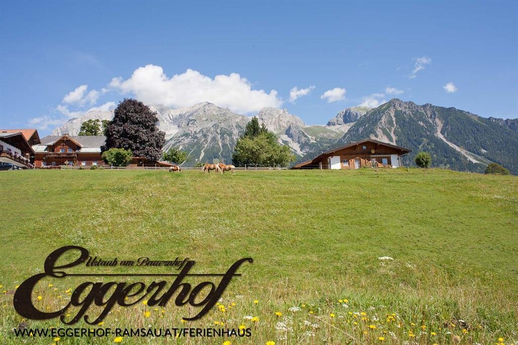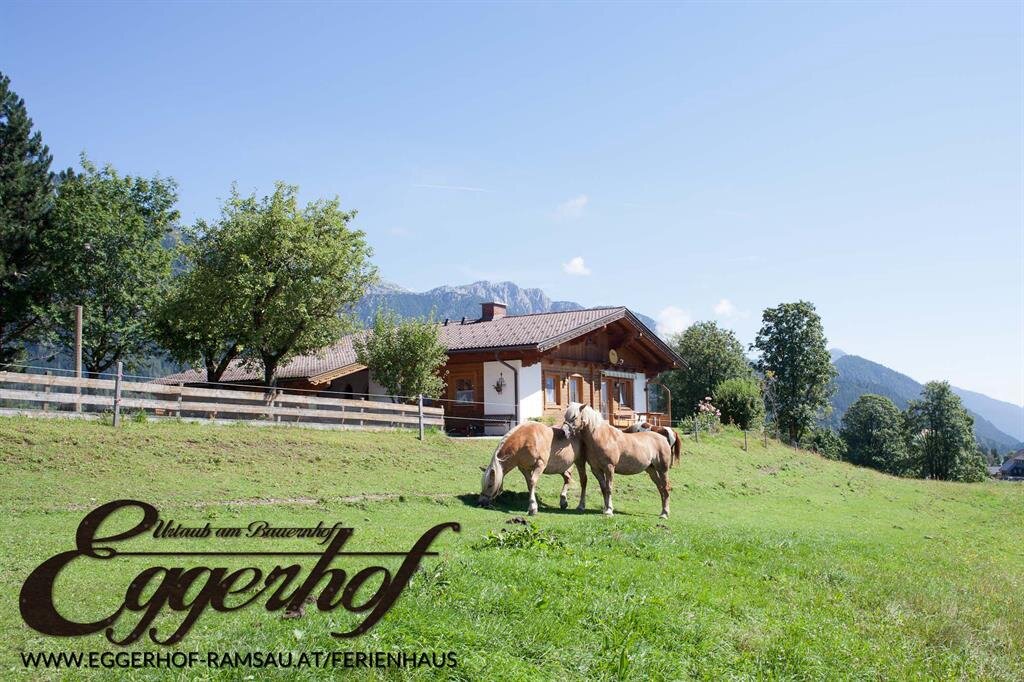 Unser liebevoll einladendes "Ferienhaus am Eggerhof" mitten im Grünen, von herrlichem Bergpanoramen und unberührter Natur umgeben, sorgt für Wohlgefühl im Urlaub. Die dazugehörige beleuchtete Terrasse mit Garten im ruhigen Umfeld lädt zum Verweilen ein. Einrichtung & Ausstattung Durch den geschützten Eingangsbereich des Carports betritt man den Vorraum mit kleiner Garderobe und hier wird man von der wohligen Wärme des Kachelofens empfangen, der gleichzeitig auch die anderen Räume einschließt. Die große, helle Wohnküche mit runden Küchentisch und gemütlicher Couchecke ist umgeben von einer wunderschönen Aussicht und hat einen Zugang zur Terrasse im Garten. Die Küche ist komplett mit Geschirr und Kochutensilien ausgestattet und hat neben Kaffeemaschine, Wasserkocher, Mikrowelle, E-Herd ( vier Kochplatten, Backrohr und Dunstabzug ), Kühlschrank mit Gefrierfächern auch eine Geschirrspülmaschine. Weiter gelangt man durch den Vorraum mit grossräumigem Wandschrank ins Badezimmer mit Badewanne, Duschkabine, Badezimmerschrank, Toilette und Waschmaschine. Im geräumigen Elternschlafzimmer ist Platz für ein Kinderbett oder Beistellbett und hier ist ebenfalls Zugang zur Terrasse. Das zweite Doppelzimmer hat ein kleines Badezimmer mit Duschkabine/Toilette und ist zusätzlich mit einem eigenen Kühlschrank ausgestattet. Außerdem ist noch eine separate Toilette vorhanden und eine Speise-/Vorratskammer bzw. ein Abstellraum mit Ablagen. Bettwäsche, Hand- und Badetücher, Tischwäsche, Geschirrtücher, Toilettpapier und diverse Reinigungsmittel werden bereitgestellt. Ein Flat-TV Fernseher mit Satellitenanschluss und Internetverbindung sorgen für ungehinderten Informationsfluss. Außerdem steht eine Grillhütte zur Verfügung und die kleinen Gäste können sich am Spielplatz (mit Fußballtor, Volleyballnetz, Schaukel, Slackline, u.v.a.m...) des Eggerhofs austoben. Das Haus wird im Winter zusätzlich zum Kachelofen auch noch vollautomatisch beheizt. Für mehr Informationen besuchen Sie bitte auch unsere Website: www.eggerhof-ramsau.at