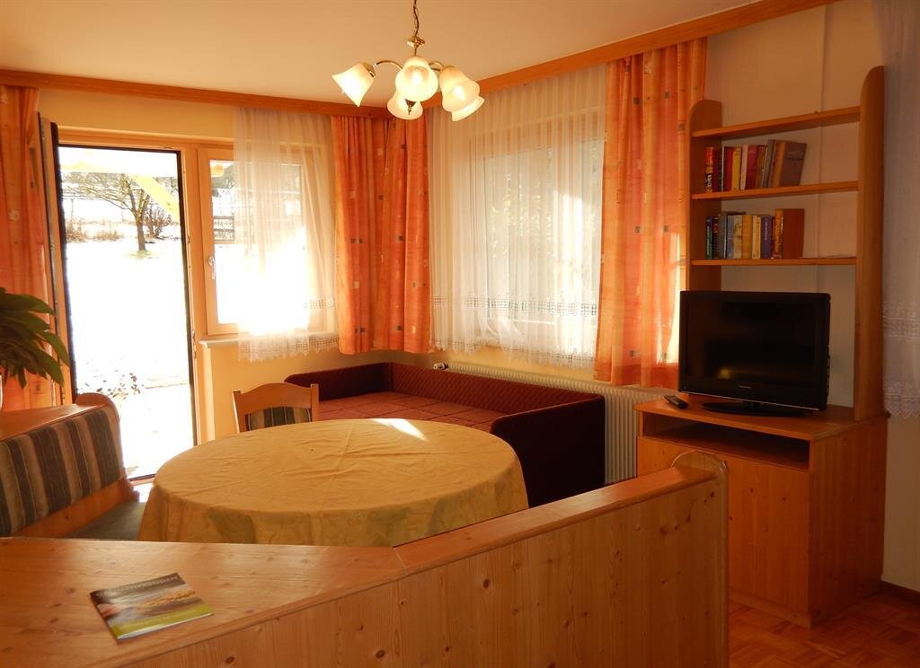 Genießen Sie eine erholsame Zeit in unseren Ferienwohnungen Rojer. Mit ihrer Lage im Zentrum von Irdning in der Urlaubsregion Schladming-Dachstein können bereits einen Katzensprung von unserer Ferienwohnung entfernt zahlreiche Freizeitmöglichkeiten, egal, ob im Sommer oder im Winter, in Angriff genommen werden. Fünf Gehminuten von unserem Haus entfernt hält im Winter der Skibus, der Sie in kürzester Zeit in die Skigebiete Planneralm oder Riesneralm bringt. Verbringen Sie Ihren Urlaub in einem unserer zwei Familienappartements ausgestattet mit je einem Schlafzimmer und Wohnzimmer mit ausziehbarer Couch, Essecke, Küchenblock, Sat-TV, gratis W-Lan, Dusche/WC, Balkon oder Terrasse. Weiteres bieten wir Ihnen ein kleineres Appartement mit einem Wohn-Schlafraum, Essecke, Küchenblock, Sat-TV, gratis W-Lan, Dusche/WC und Balkon. Mit unserer zentralen Lage in Irdning sind Sie morgens nur wenige Gehminuten von der örtlichen Bäckerei, deren frisches Gebäck jeden Morgen für den perfekten Start in den Tag sorgt, entfernt. Die Irdninger Restaurants, die natürlich ebenfalls gut zu Fuß zu erreichen sind, lassen auf kulinarischer Ebene keine Wünsche offen. Im Sommer ist unser Ferienhaus Rojer der ideale Ausgangspunkt für die zahlreichen Wanderungen, die die Urlaubsregion Schladming-Dachstein zu bieten hat. Bei Radfahrbegeisterten wird mit dem kilometerlangen Ennsradweg, an dem die Gemeinde Irdning liegt, kein Wunsch offen gelassen. Der Irdninger Badeteich oder der nur wenige Minuten entfernte Putterersee sorgen an einem heißen Sommertag für die perfekte Abkühlung. Im Winter erreichen Sie in nur fünf Gehminuten den Skibus, der Sie entweder in das Familienskigebiet Riesneralm oder in die Planneralm, eines der letzten Skigebiete, welches vollständig auf künstliche Beschneiung verzichtet, bringt. Mit dem Auto erreichen Sie in weniger als einer halben Stunde die weltberühmte 4-Berge-Skischaukel, die nahezu unendlichen Skispaß auf bestens präparierten Pisten garantiert. Ob es nun die 4-Berge-Skischaukel, die Planneralm oder die Riesneralm ist, neben Skifahrern werden auch Rodelbegeisterte und Skitourengeher vollends auf ihre Kosten kommen. Erleben Sie unvergessliche Momente inmitten der Urlaubsregion Schladming-Dachstein in unserem Ferienhaus Rojer in Irdning. Wir, die Familie Rojer freuen uns bereits, Sie bei uns begrüßen zu dürfen.