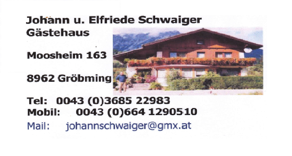 Unser Gästehaus Schwaiger liegt auf 670m Seehöhe im Herzen der Urlaubsregion Schladming-Dachstein in Moosheim bei Gröbming.