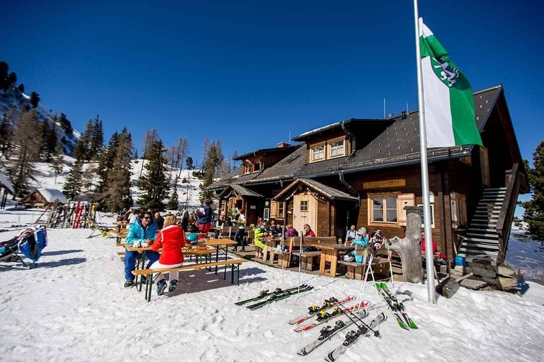 Zum Verweilen und Genießen laden eine sonnige Terrasse sowie die urigen Gaststuben der Skihütte/Jausenstation ein.