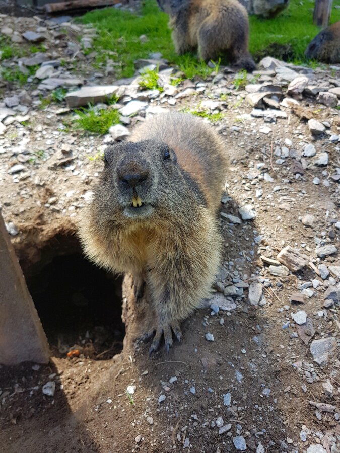 Wichtig: Unsere Murmeltiere sind freilebende Wildtiere und ihr Verhalten kann unvorhersehbar sein. Nähere Dich ihnen immer behutsam und mit Bedacht – und bitte ohne Hund!