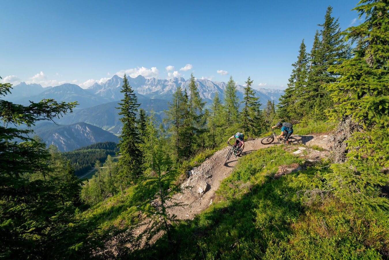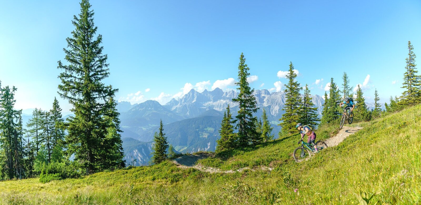 Ab der Bergstation Preunegg Jet wartet eine 1 km lange und fordernde Auffahrt zum Ausgangspunkt des Gassl Trails. Oben angekommen belohnt ein imposantes Panorama mit direktem Blick zum Dachstein. Querungen unterhalb von Felswänden und enge Kurven lassen das Bikerherz höher schlagen. Wer bei all dem Adrenalin mal durchschnaufen will, dem bietet dieser Panoramatrail einige ganz besondere Fotospots.