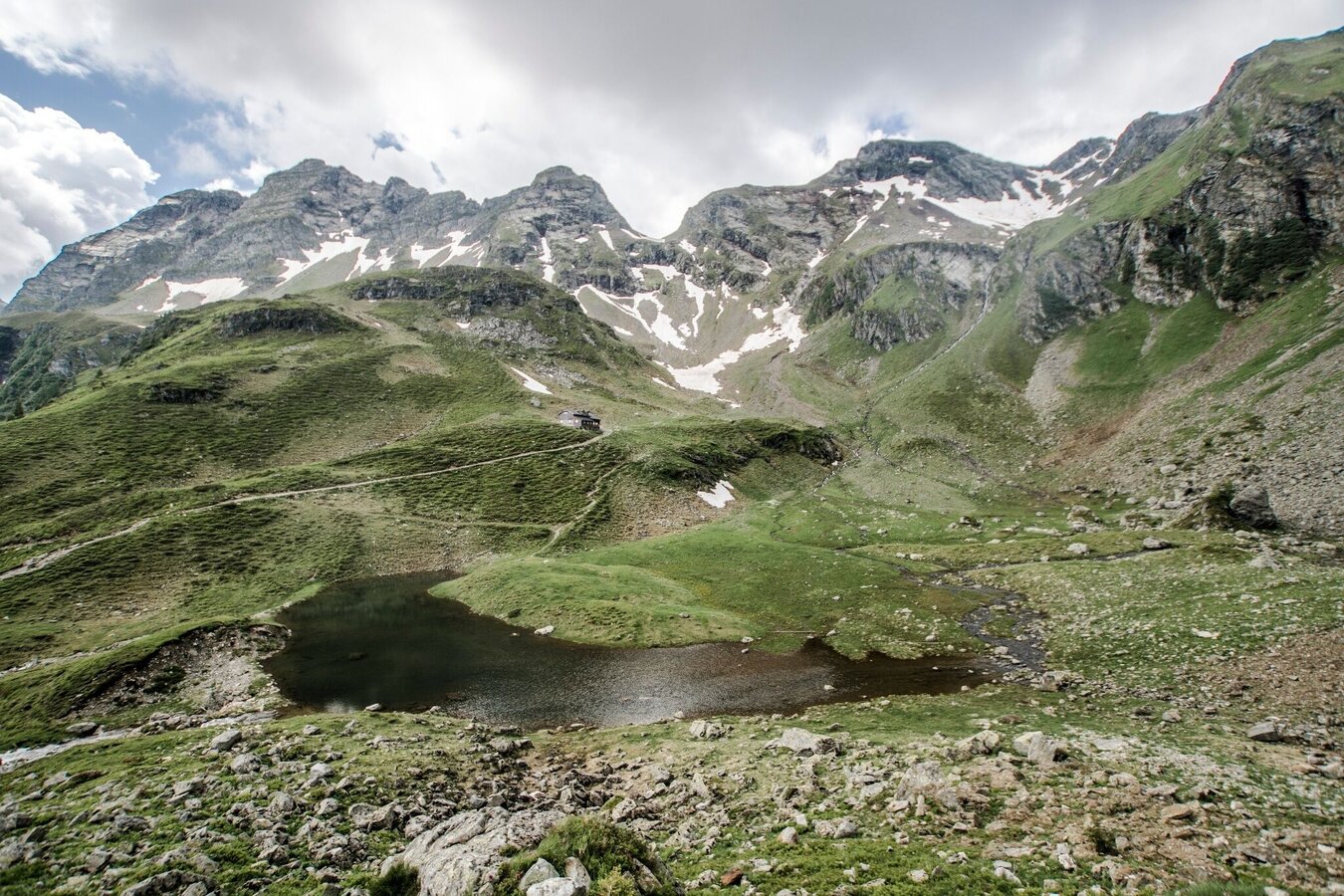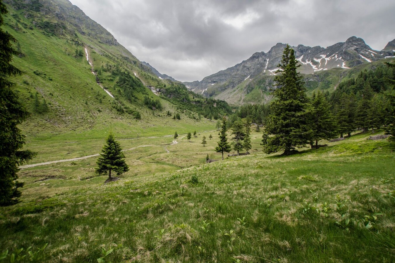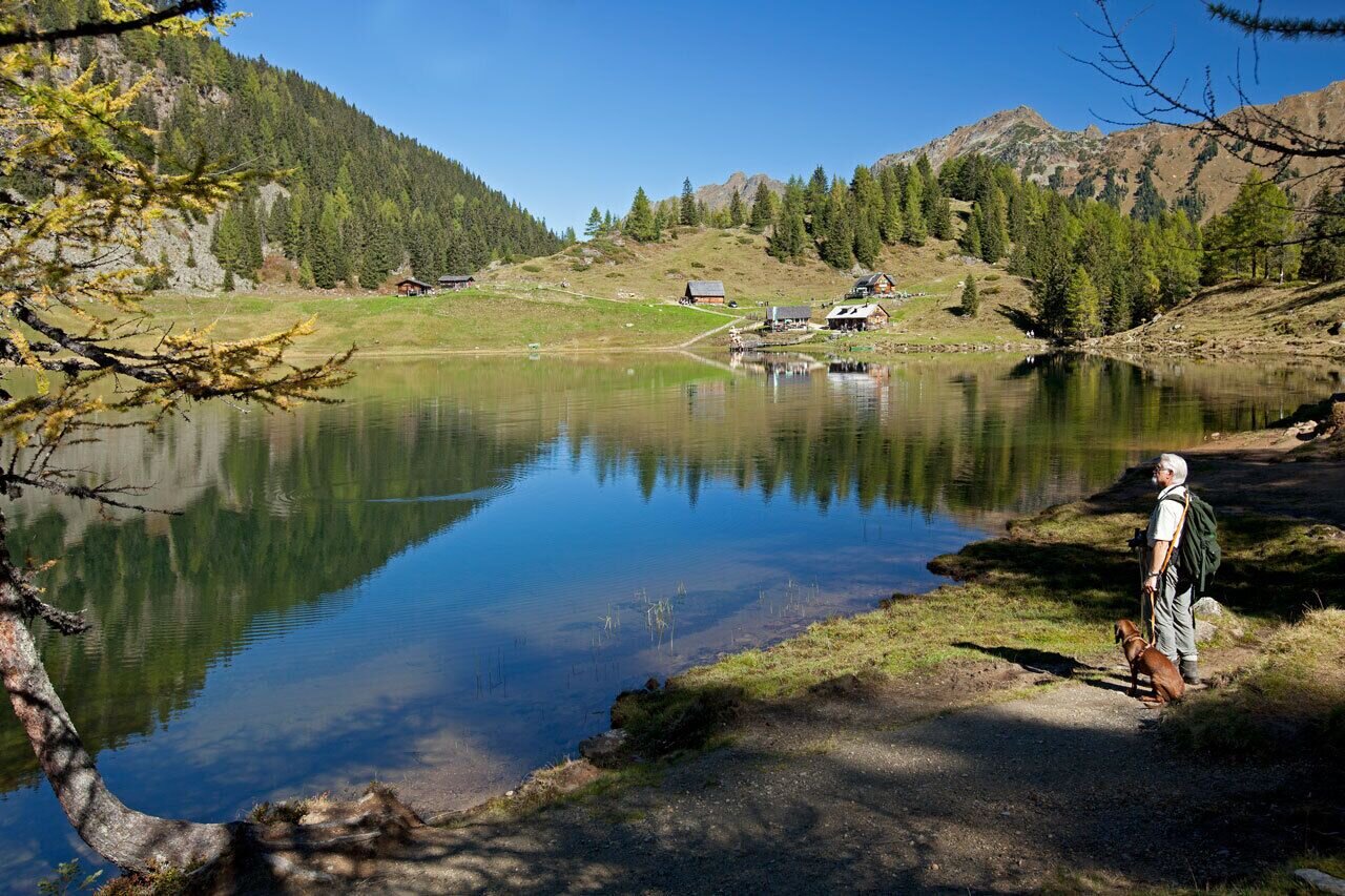 Leicht ansteigend verläuft der Weg nun entlang der Flanken von Grobfeldspitze, Giglachalmspitze und Murspitzsattel hin zum Murspitzsattel auf der Ferchtlhöhe. Vom Grat bietet sich hier ein atemberaubender Tiefblick ins Duisitzkar mit seinem dunklen grünblauen See. Der Abstieg ist zuerst recht steil und es gibt zu Beginn auch eine kurze seilversicherte Stelle an einem Wegabbruch. Danach wird das Gelände etwas flacher bis man schließlich in die ersten Ausläufer eines Lärchen- und Zirbenhochwaldes eintaucht. Durch den Bergwald geht es bergab zum See, der immer wieder zwischen den Bäumen hervorblitzt. Am See hat man sich bei der Duisitzkarseehütte oder Fahrlechhütte eine Einkehr verdient. Im Sommer sind die Tage auch lange genug um noch eine Zeit am See zu verweilen und die Natur zu genießen. Solltest Du zu den Hartgesottenen zählen und im See schwimmen gehen, nimm dabei Rücksicht auf die Fische im See und vermeide es beispielsweise Staub aufzuwirbeln. Geh bitte außerdem nicht mit Sonnenschutz eingecremt ins Wasser, da dies die sensible Ökologie des Sees aus dem Gleichgewicht bringen kann.
